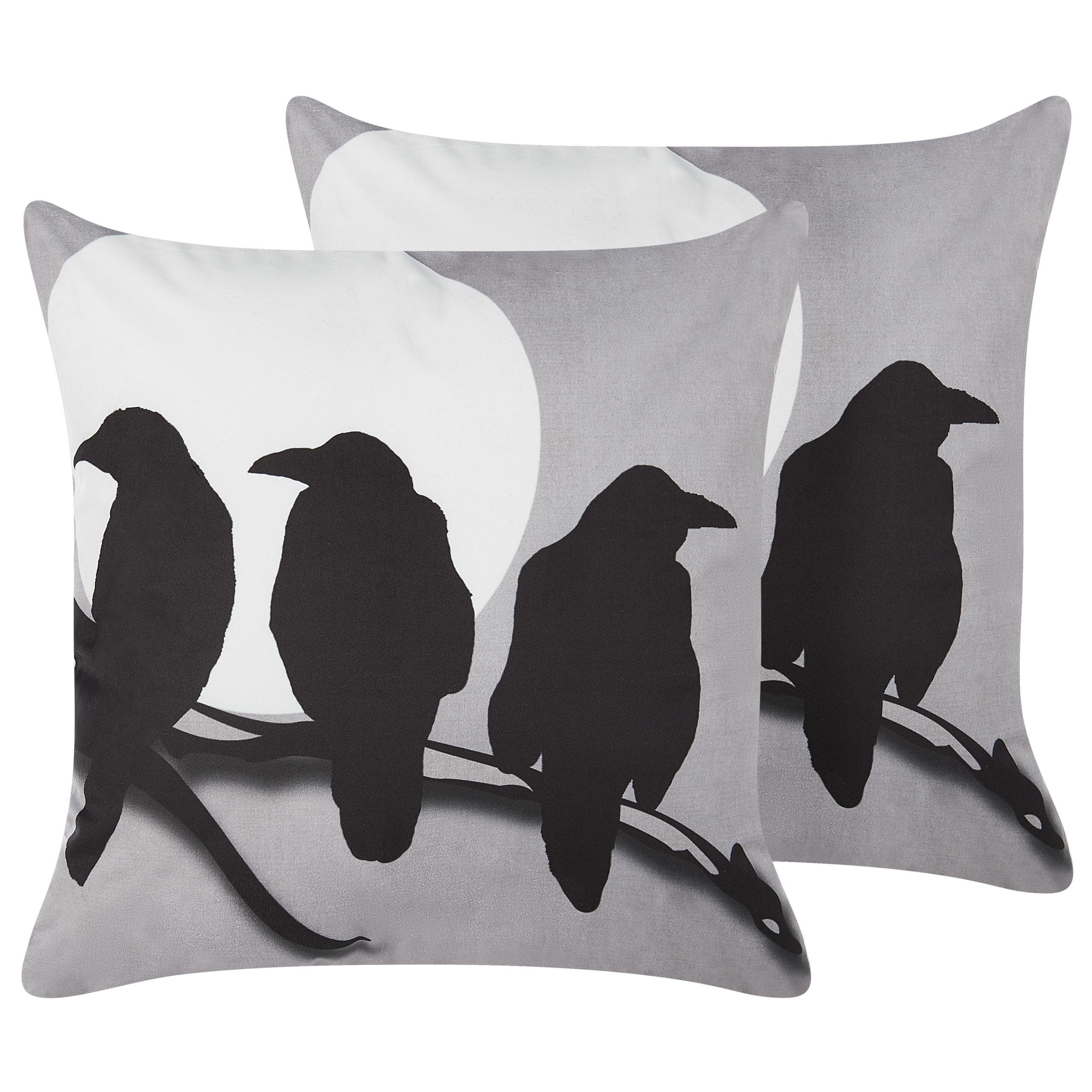 Coussins décoratifs d'Halloween. Préparez votre maison pour une fête d'Halloween et mettez-y de l'ambiance avec ces coussins. Leurs housses représentent des oiseaux se reposant sur une branche pendant la pleine lune - ce motif ne manquera pas d'effrayer vos invités. Les coussins sont fabriqués en velours, ils sont donc résistants et agréables au toucher. Les housses sont également dotées d'une fermeture éclair, ce qui vous permet de les retirer et de les nettoyer à tout moment.