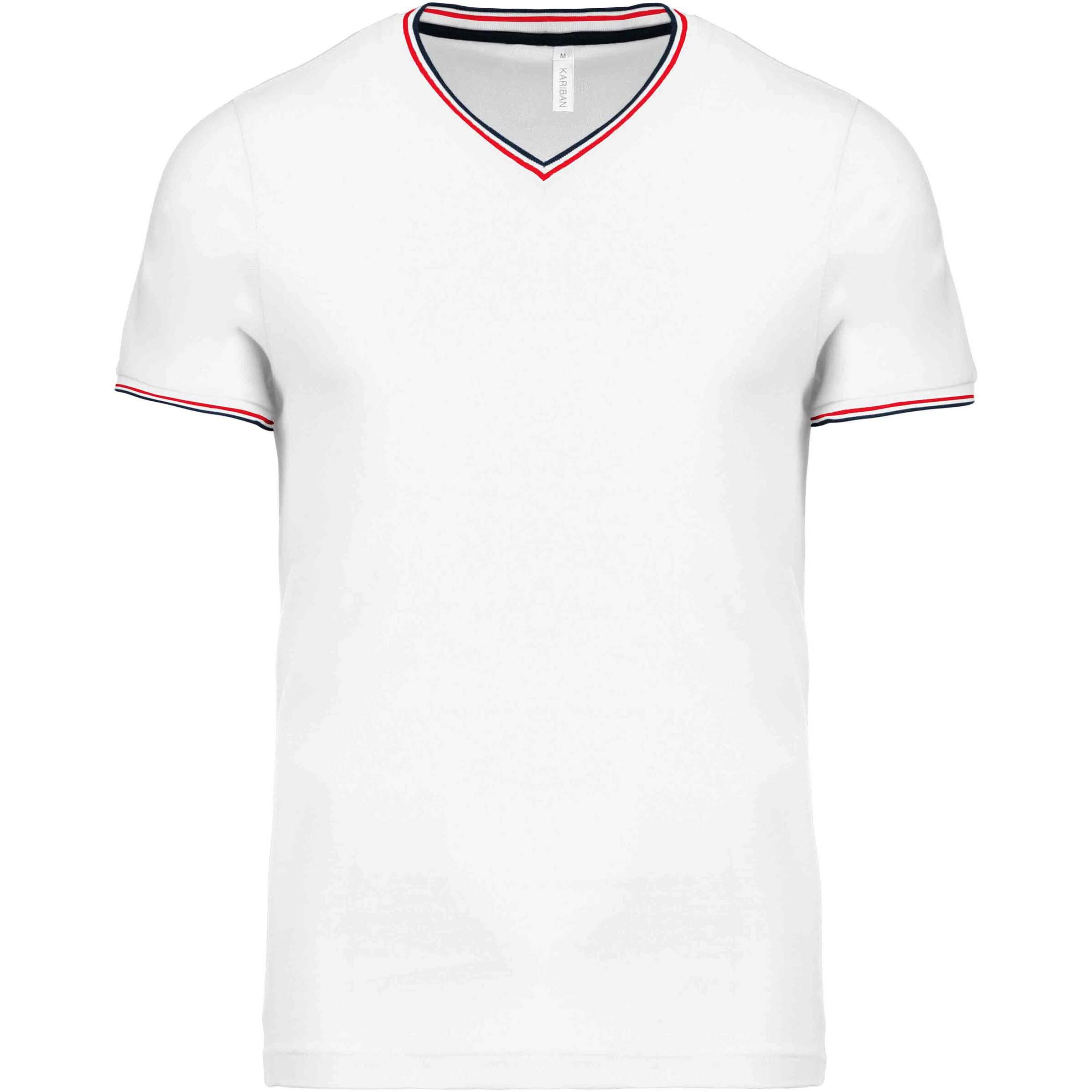 Ce t-shirt piqué à col en V offre une coupe classique et confortable, parfaite pour un usage quotidien. Le tissu en maille piquée procure un aspect et un toucher texturés, tandis que le design à col en V ajoute une touche d'élégance décontractée.