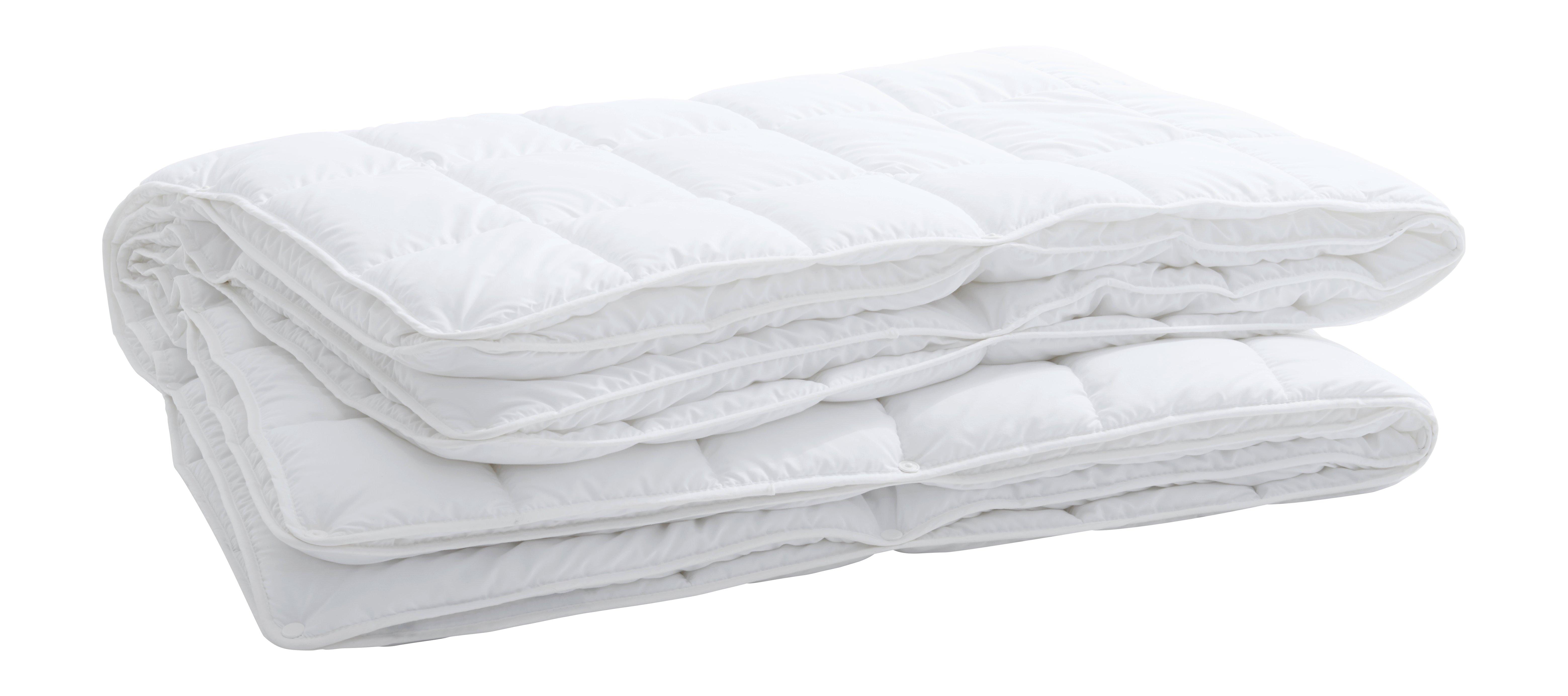 Duvet synthétique 4-saisons. Un plus léger pour lété, un plus chaud pour le printemps et lautomne. Les deux réunis avec boutons-pression constituent un duvet agréablement chaud pour lhiver. Duvet résistant à la cuisson avec remplissage de fibres creuses de haute qualité. Particulièrement gonflant et moelleux. Convient parfaitement aux personnes allergiques. Entretien facile, supporte de fréquents lavages. Lavable jusquà 95°C et séchage dans le tumbler.