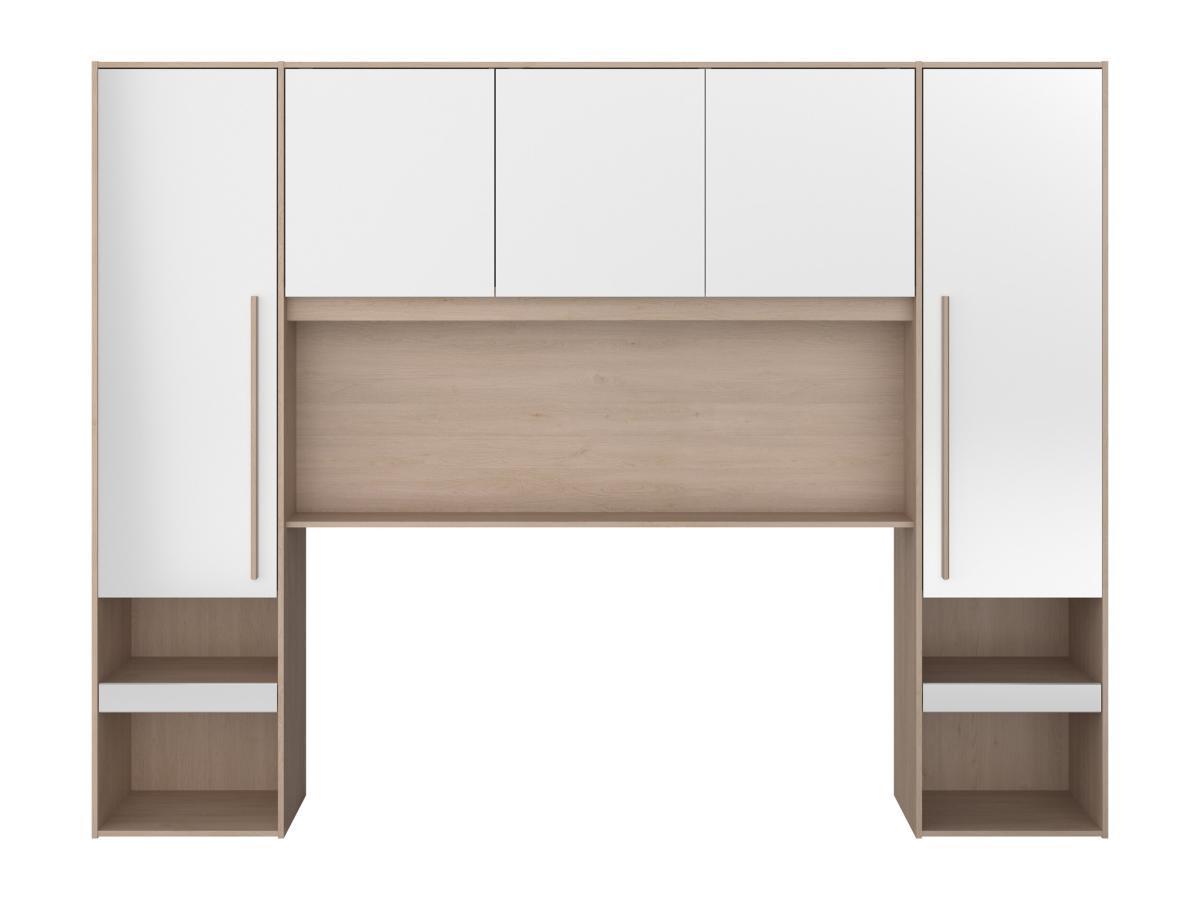 Vente-unique, Pont de lit avec rangements - Avec LEDs - L265 cm - Coloris : Blanc brillant et naturel - VELONA