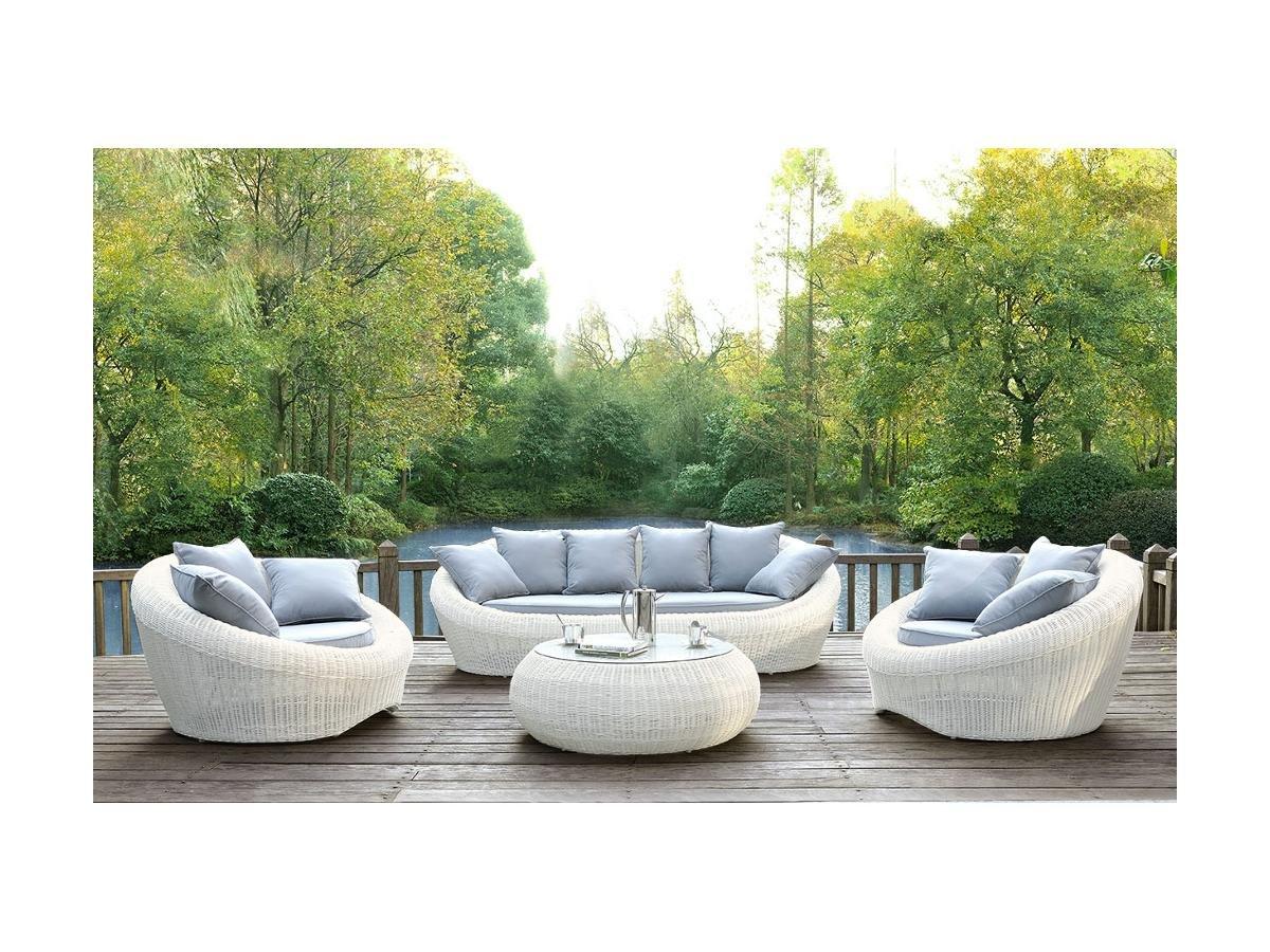 Vente-unique Salon de jardin en résine tressée écru : canapé, 2 fauteuils et table basse - WHITEHEAVEN de MYLIA