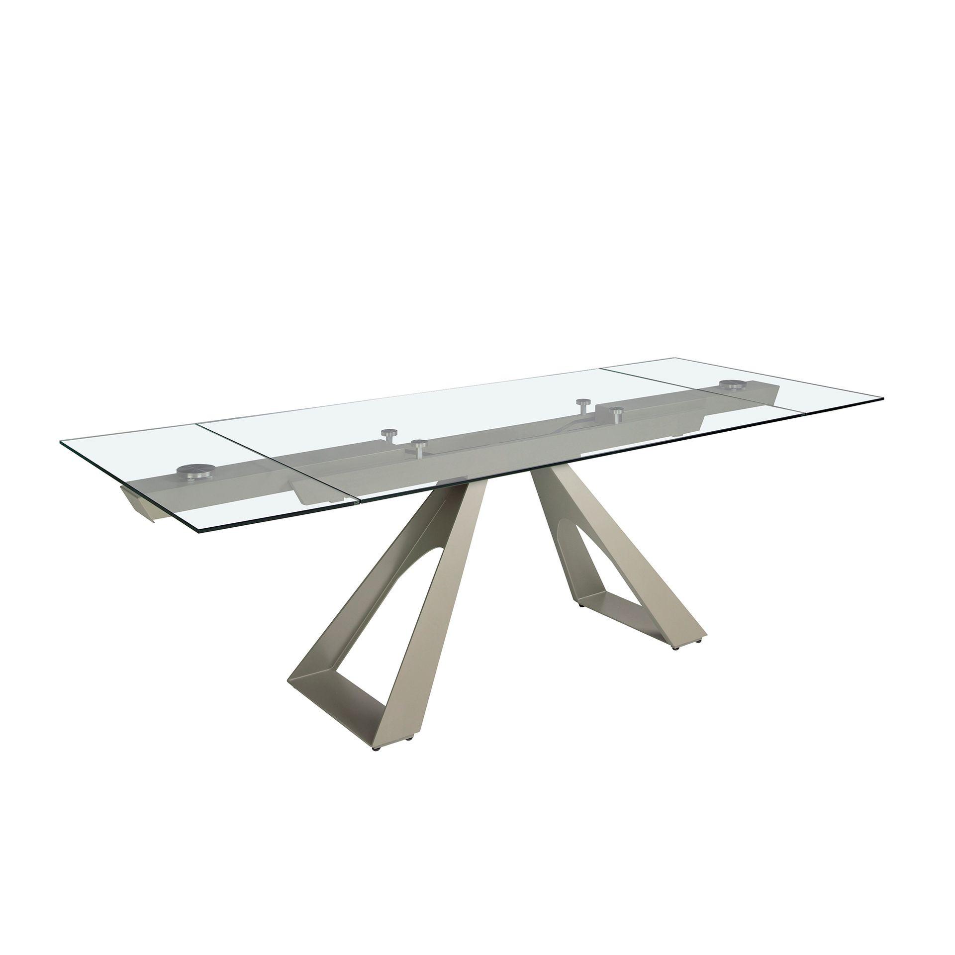 ANGEL CERDA Table de salle à manger rectangulaire à rallonge en verre trempé et acier gris taupe