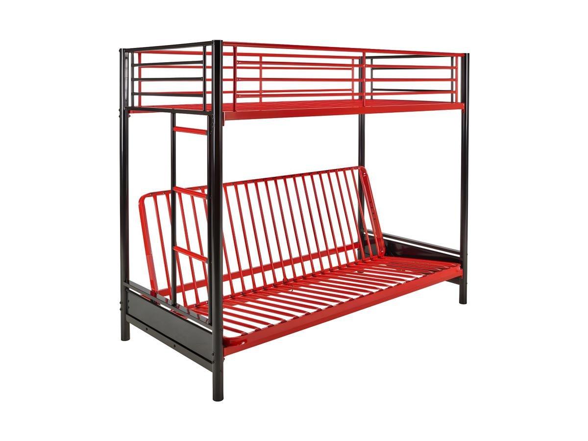 Vente-unique Lit mezzanine 90 x 190 cm - Avec banquette convertible - Métal - Noir et rouge - MODULO V