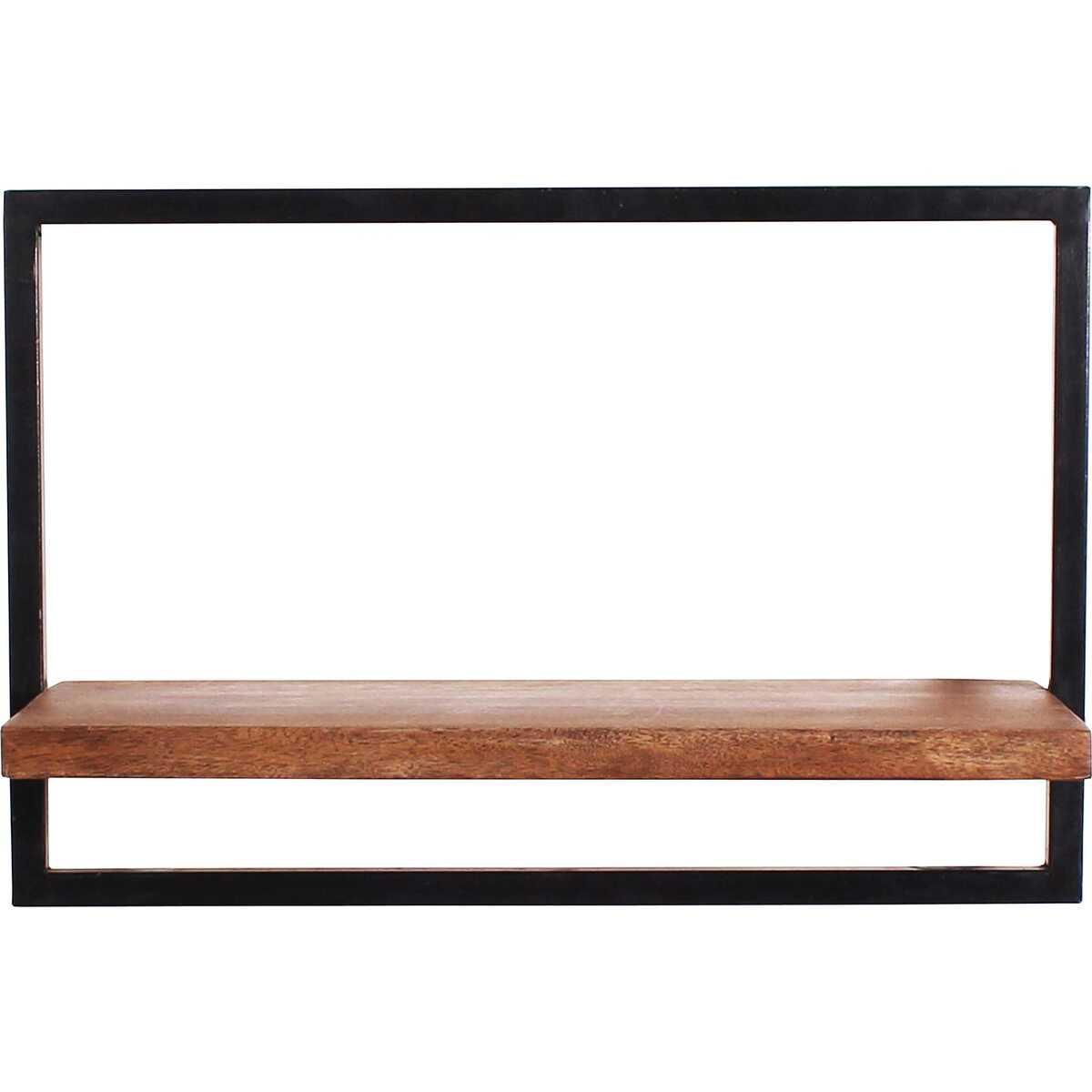 Etagère murale en bois de manguier avec ferraille et avec 1 fond, naturel avec noir antique, 65x25x35