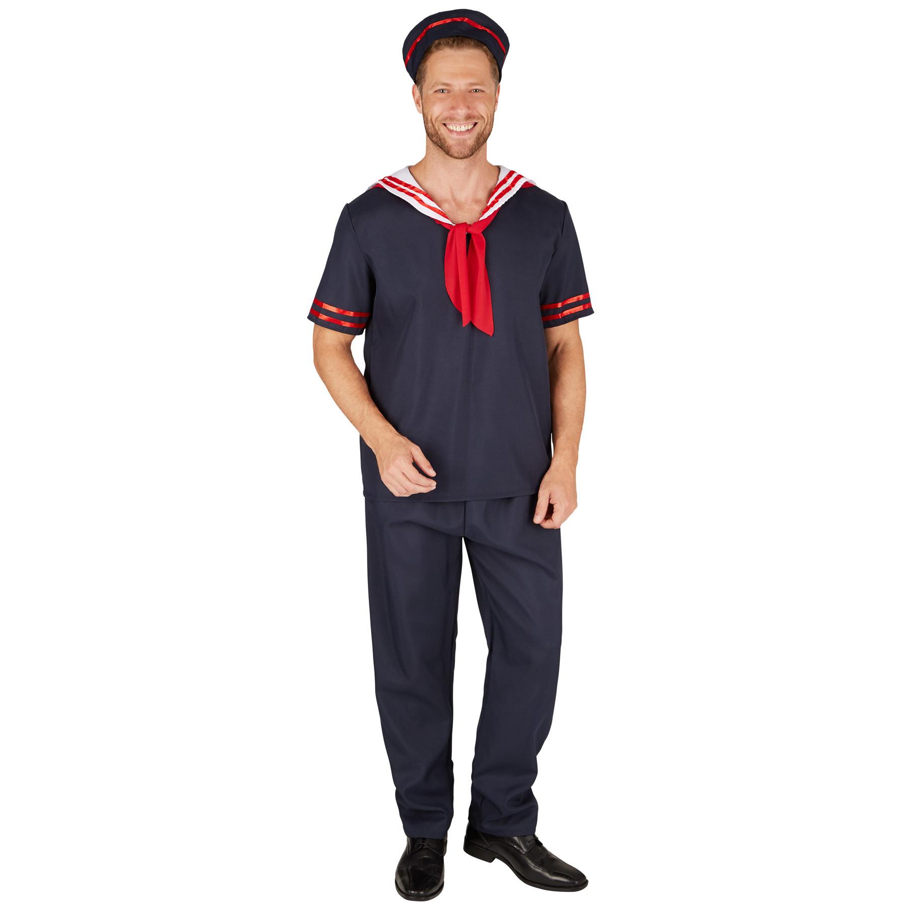 Le costume de matelot se compose d'un haut à manches courtes, d'un pantalon à bande élastique et d'un bonnet. Matériau : 100 % polyester.