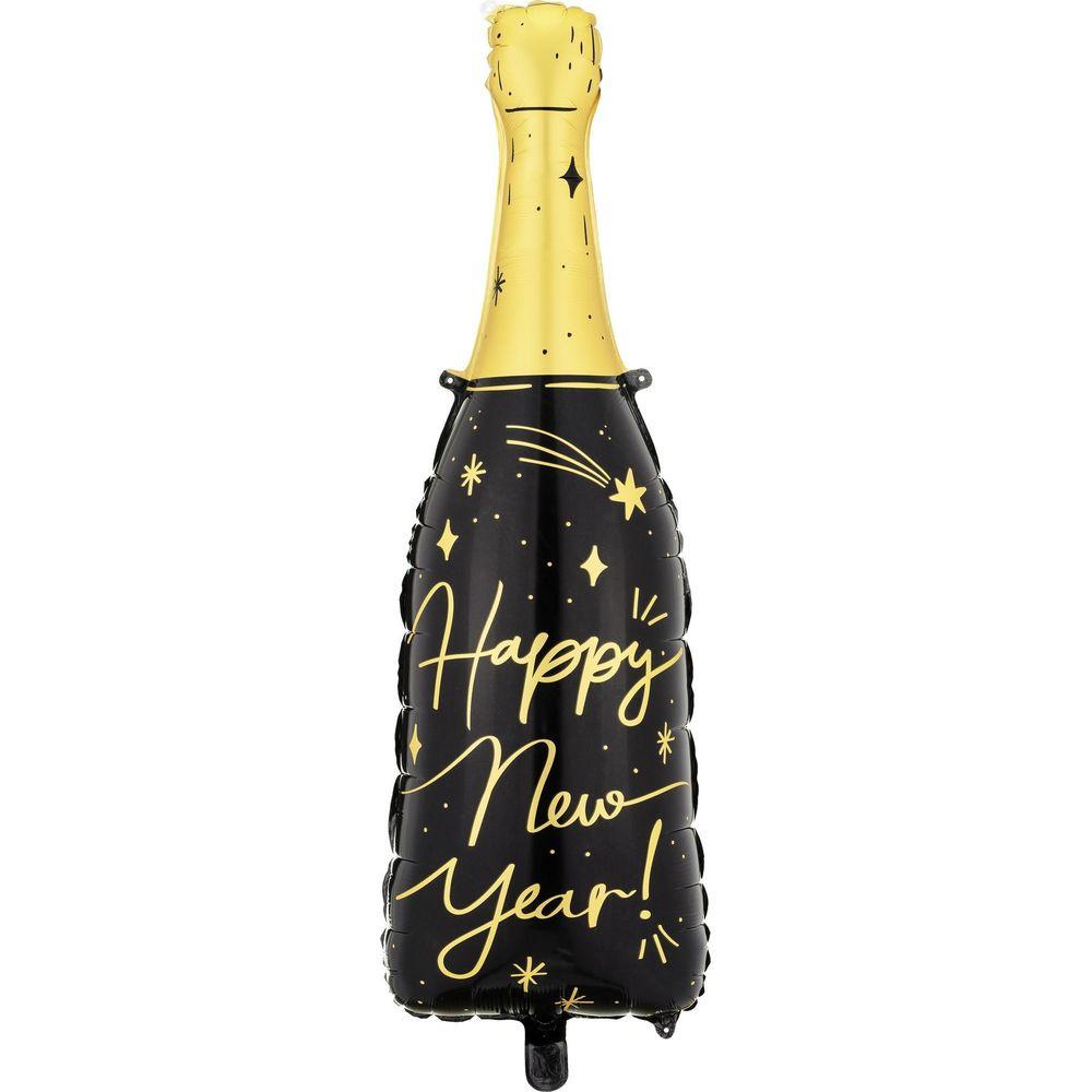 Ballon en aluminium Bouteille Happy New Year, mélange de couleurs, dimensions avant gonflage: 39,5 x 98 cm (15,5 x 38,5'') environ, hauteur apr?s gonflage 27 x 88 cm (10,5 x 34,5'') environ, ? gonfler avec hélium ou air. Livré avec une paille de gonflage.