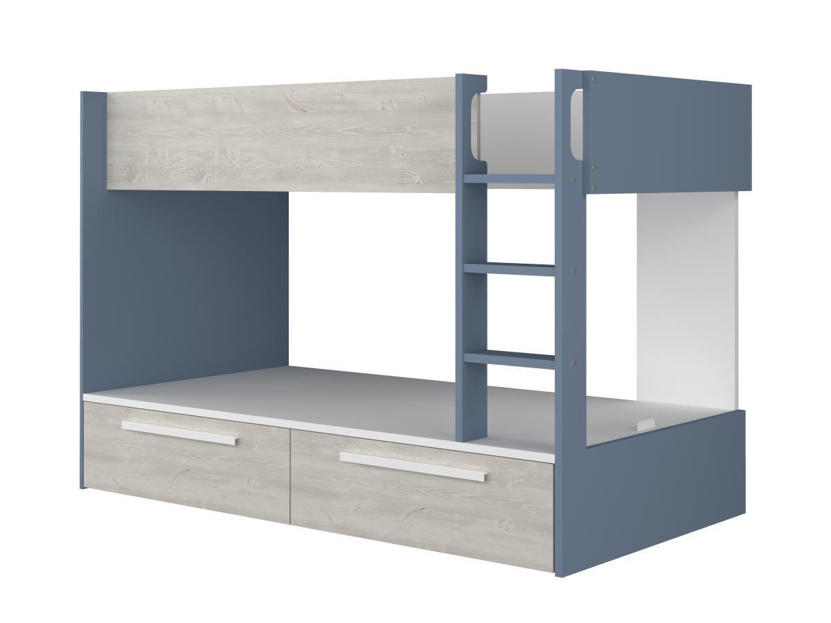 Vente-unique, Lits superposés 2 x 90 x 200 cm - 2 tiroirs - Bleu, naturel et blanc - TINOLI