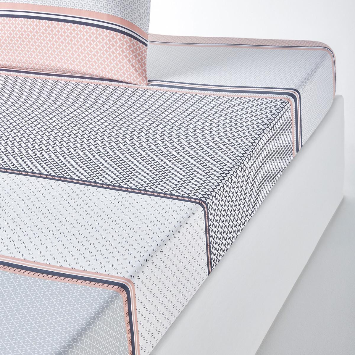 Le drap-housse imprimé Nayma en coton arbore un délicat motif géométrique très tendance. Il apporte une touche moderne et originale à la chambre à coucher.