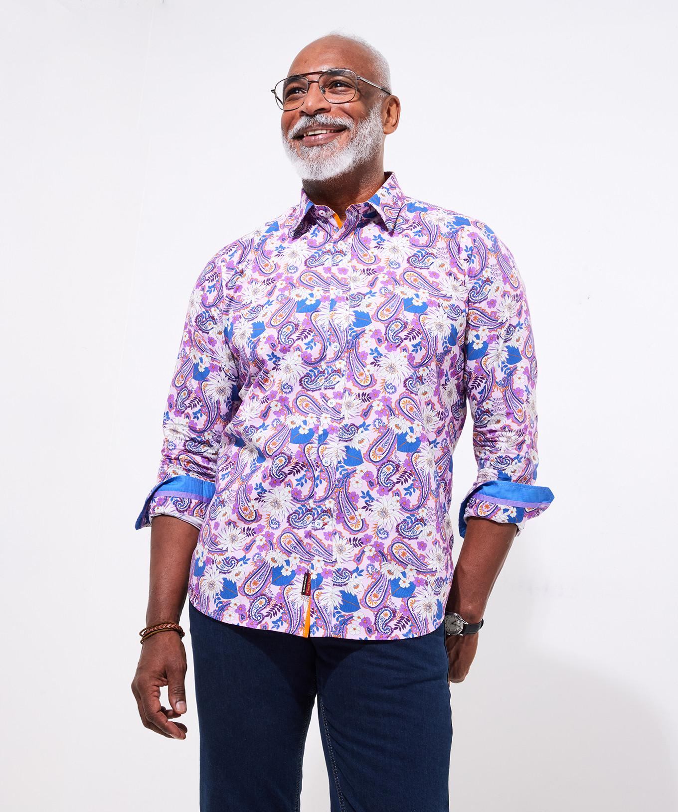 Cette chemise à manches longues présente un motif cachemire et floral éclatant, offrant un look distinctif et élégant. Le design comprend un col classique et une fermeture boutonnée sur le devant, ce qui la rend adaptée à diverses occasions.