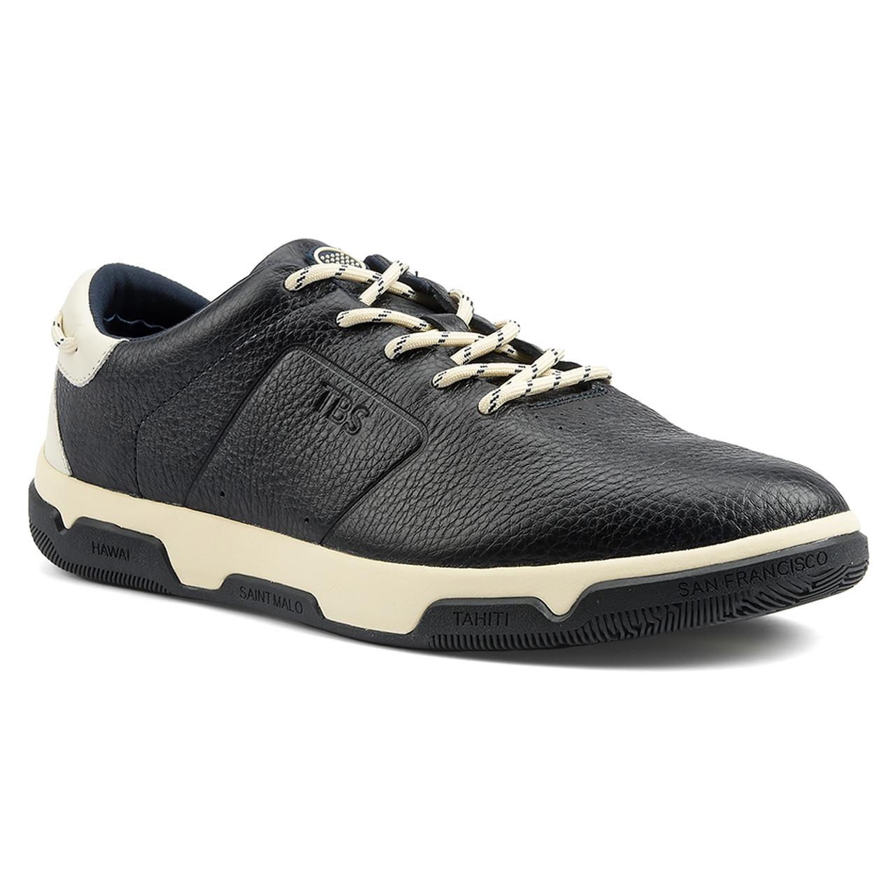 Les chaussures Gedeone sont des chaussures à lacets conçues pour un usage quotidien. Fabriquées en cuir, elles offrent un ajustement et un confort optimaux. La semelle intérieure textile est amovible, facilitant ainsi le nettoyage et l'entretien. La semelle extérieure en gomme garantit une durabilité et une résistance à l'usure. Les détails de la chaussure incluent une texture de surface, un cuir grainé, et l'inscription du nom de la marque "TBS" sur le côté près de la talonnière. Les lacets blancs et bleu marine complètent l'ensemble. Les textes imprimés autour de la semelle, "HAWAII", "SAN FRANCISCO", "MALOULOU" et "TAHITI", ajoutent une touche de personnalité à la chaussure. La doublure en textile bleu marine harmonise avec la couleur des lacets. La semelle intérieure et la doublure en textile offrent une touche de confort supplémentaire. Les chaussures Gedeone sont idéales pour un usage quotidien, qu'il s'agisse de sorties ou de bureau.