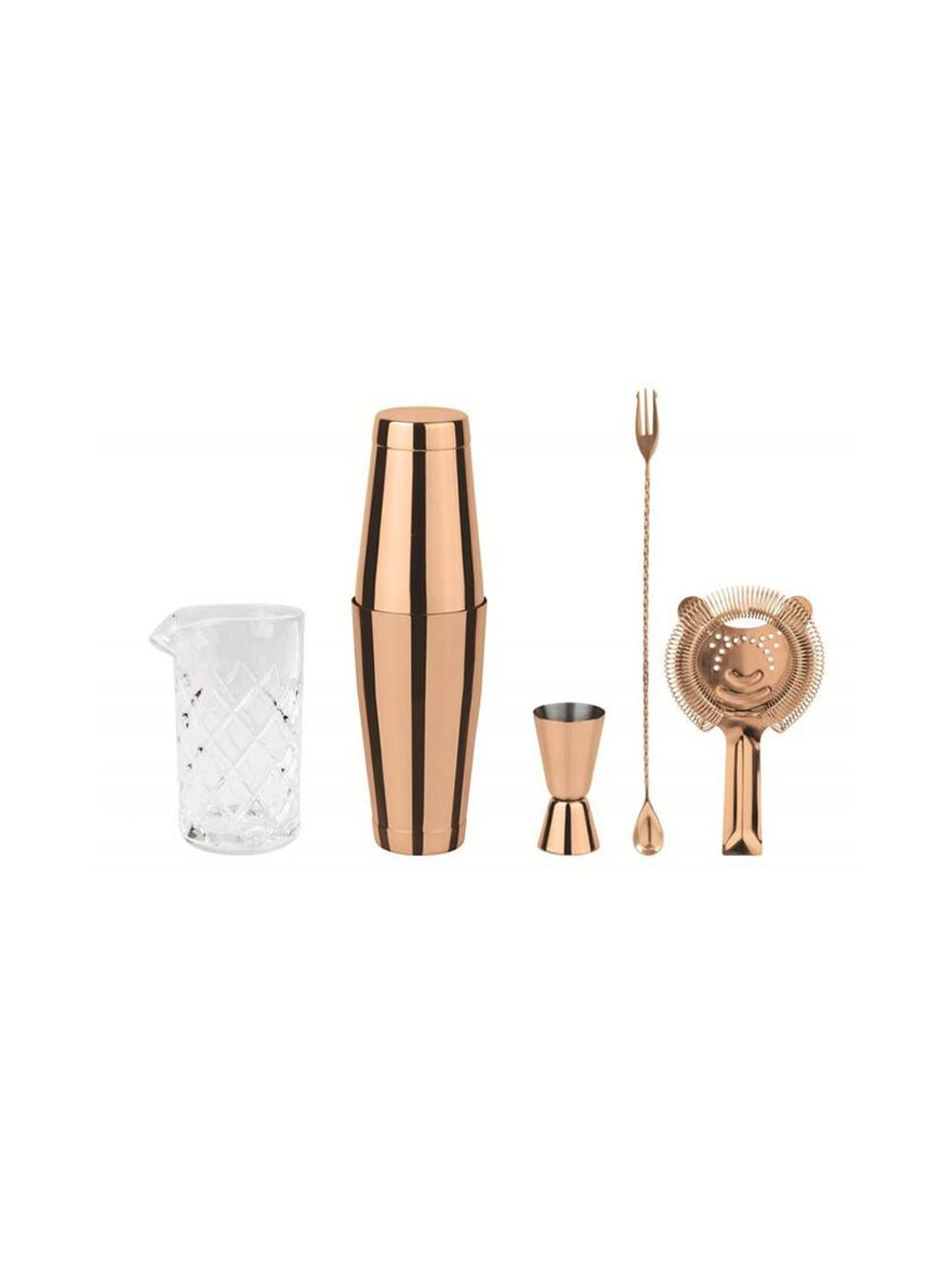 Type de matériau : Métal, Matériau : Acier inoxydable, Couleur détaillée : Cuivre, Blanc, Ensemble : Oui, Capacité : 0,79 l, Mode de fonctionnement : Fonctionnement manuelLensemble se compose de : Carafe, Passoire, Shaker Boston, Jigger et Cuillère/Plat de 30 cmLavable à la main uniquementEn acier inoxydableDans la couleur Cuivre/BlancCapacité : 0,79 l
