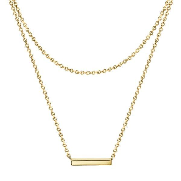 Aimez-vous les conceptions de bijoux minimalistes avec des formes géométriques? Ensuite, cette jolie chaîne de l'étiquette Glappiece Munich est un incontournable pour votre boîte à bijoux! Sur une chaîne d'ancrage en filigrane, un pendentif subtil se niche en bravoure dans votre clivage. Eyecatcher est la conception à deux roches avec différentes longueurs de chaîne. La chaîne et la remorque sont fabriquées en argent sterling jaune - idéal pour toutes les fashionistas qui aiment la nuance d'or classique. Extra pratique: À l'aide de la petite pièce d'extension, la chaîne peut être ajustée rapidement et facilement en longueur.