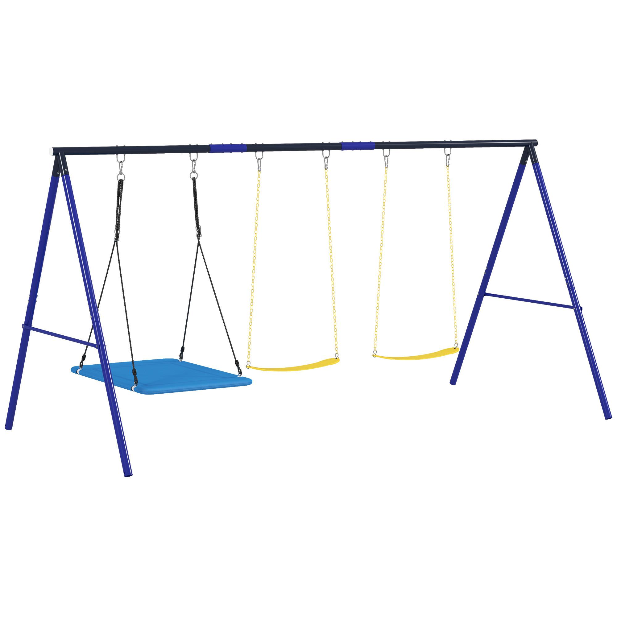 Découvrez le plaisir de jouer avec la balançoire pour enfants AIYAPLAY ! Avec son cadre en acier durable de 50 mm et ses quatre ancrages au sol robustes, cette balançoire de 1,8 m peut supporter jusqu'à 120 kg. La balançoire de jardin pour enfants offre deux balançoires à ceinture EVA confortables et une balançoire à plate-forme réglable - idéale pour jusqu'à trois enfants.