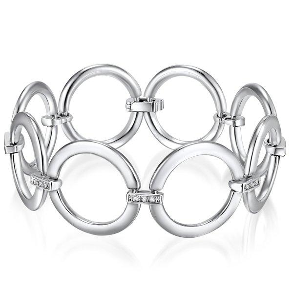Le concepteur de Rafaela Donata a conçu un morceau de classe de mode avec ce bracelet séparé, rencontre des formes classiques à la pointe de la technologie chic. Le mélange de matériau raffiné avec brillant argenté digne, qui vient parfaitement dans les éléments annulaires, ne manque jamais d'effet. Les membres intermédiaires étroits sont, au-dessus de cela, décorés de cristaux de Swarovski®, qui transforment le bracelet vers un accélérant par excellence. Une fermeture pliante presque invisible a été intégrée au bijou qui le garde en sécurité mais pas trop serrée sur votre poignet. Cela reste donc mobile et fait chacun de vos mouvements dignes!