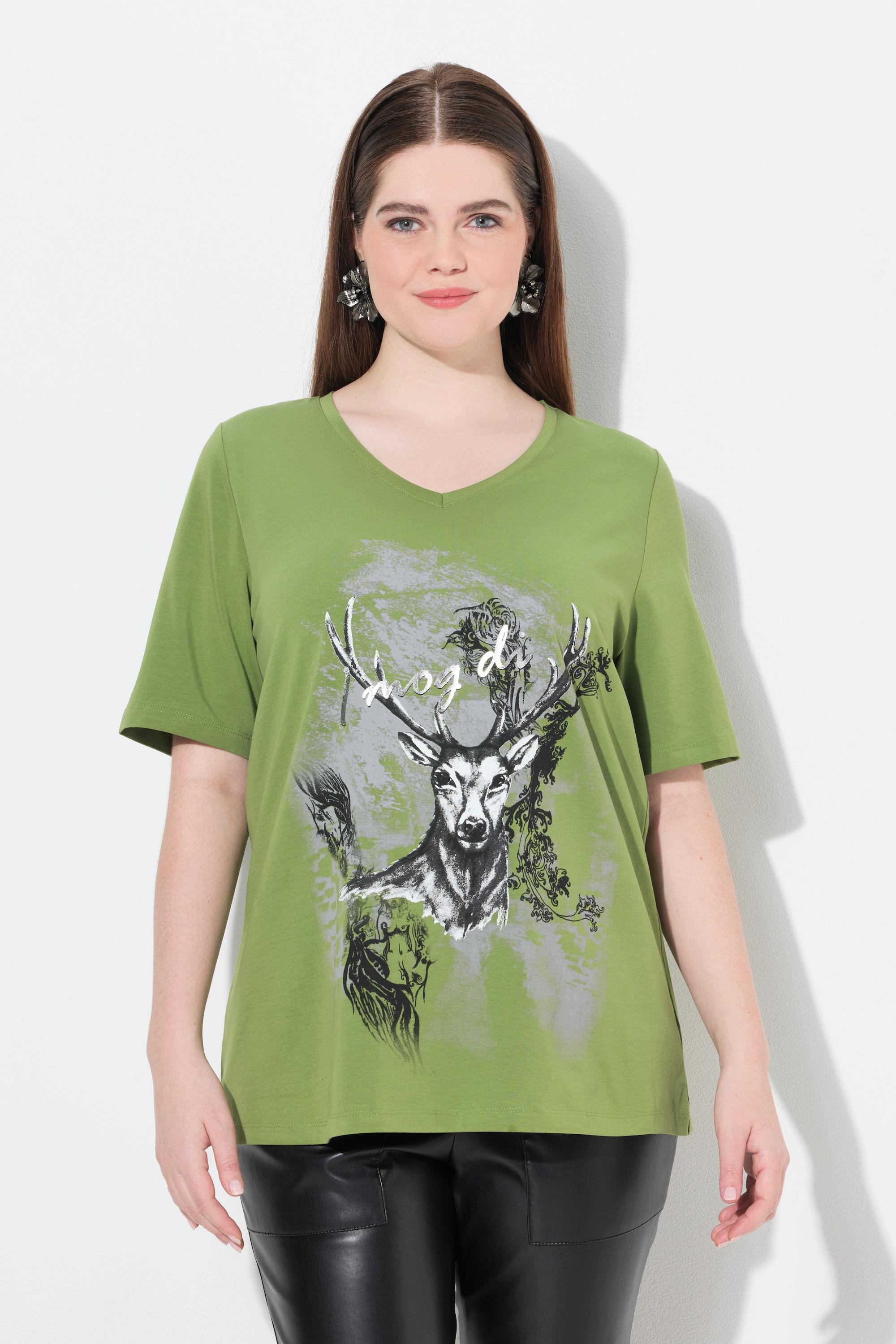 Ulla Popken T-shirt Trachtenmotiv Classic Col V Manches Courtes