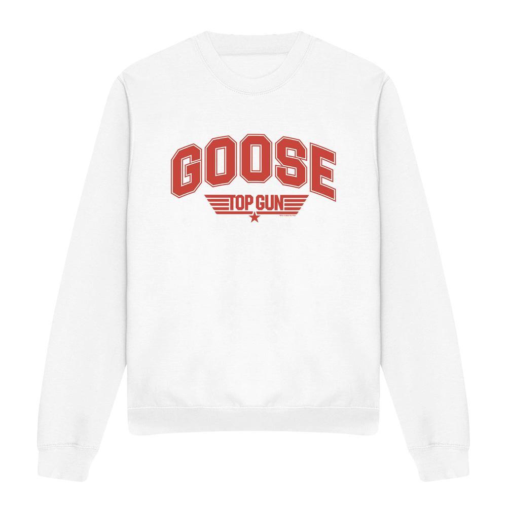 Ce sweatshirt présente un graphique "GOOSE" proéminent avec des détails "TOP GUN" en dessous, inspiré du film emblématique. Le design est imprimé sur un sweatshirt classique à col rond, offrant un style confortable et décontracté.
