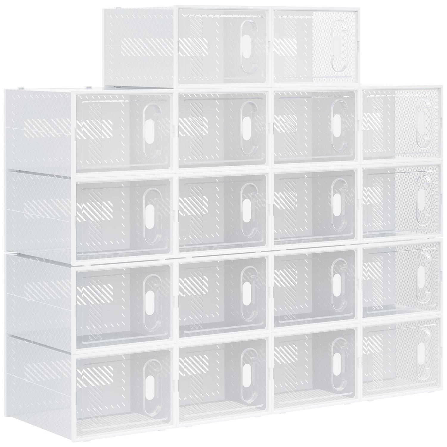 Northio Lot de 18 boîtes à chaussures, organisateur de chaussures avec portes magnétiques, boîte à chaussures avec couvercle, rangement à chaussures en plastique, pour chaussures jusqu'à la taille 45, transparent + blanc Aosom