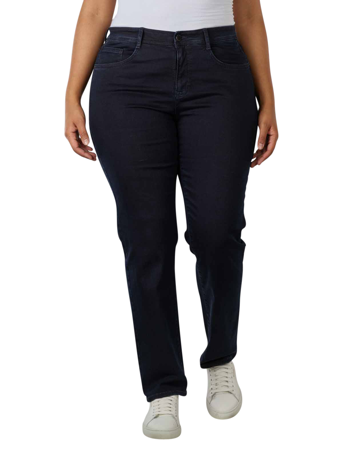 Ce jean Carola Plus Size Straight Fit offre une silhouette confortable et flatteuse. Le jean moderne à coupe droite classique contient 4 % d'élasthanne pour un confort optimal et se ferme avec une fermeture éclair. Il a été produit de manière écologiquement durable. La taille haute, associée aux cuisses et à l'ouverture des jambes droites, assure une silhouette avantageuse.