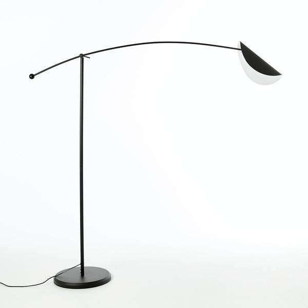 Le lampadaire Funambule. Une ligne légère et aérienne, inspirée des mobiles et de la nature avec son abat-jour orientable en forme de feuille. Sa belle envergure permet de le mettre au-dessus d'une table ou d'un canapé.
