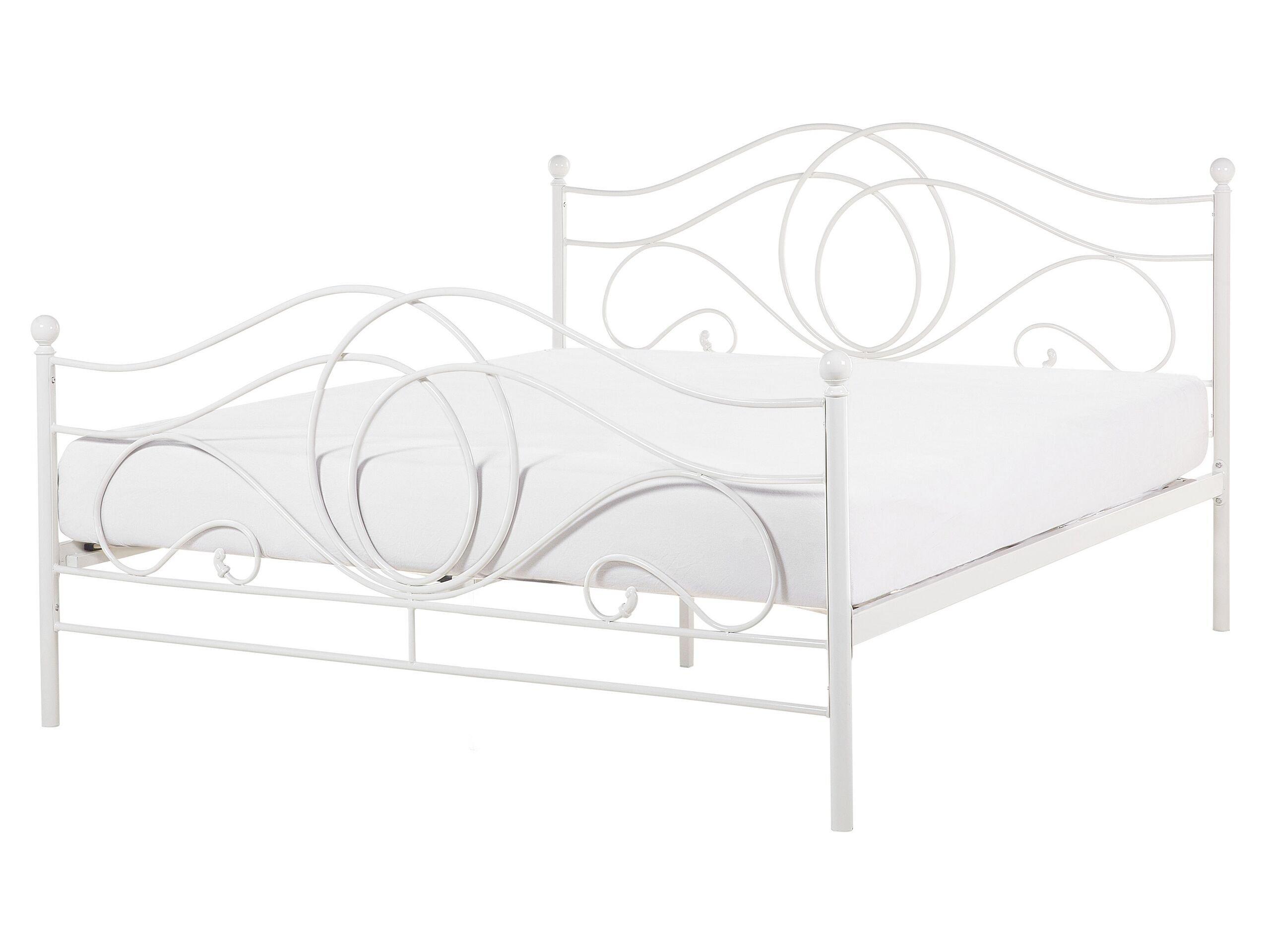 Lit deux places métallique. Ajoutez une touche de romantisme à votre chambre à coucher en optant pour ce lit avec sommier. Il est fabriqué en métal durable à revêtement en poudre et est facile à entretenir. Les formes courbées ajoutent une touche d'élégance au design. Faites de beau rêve !