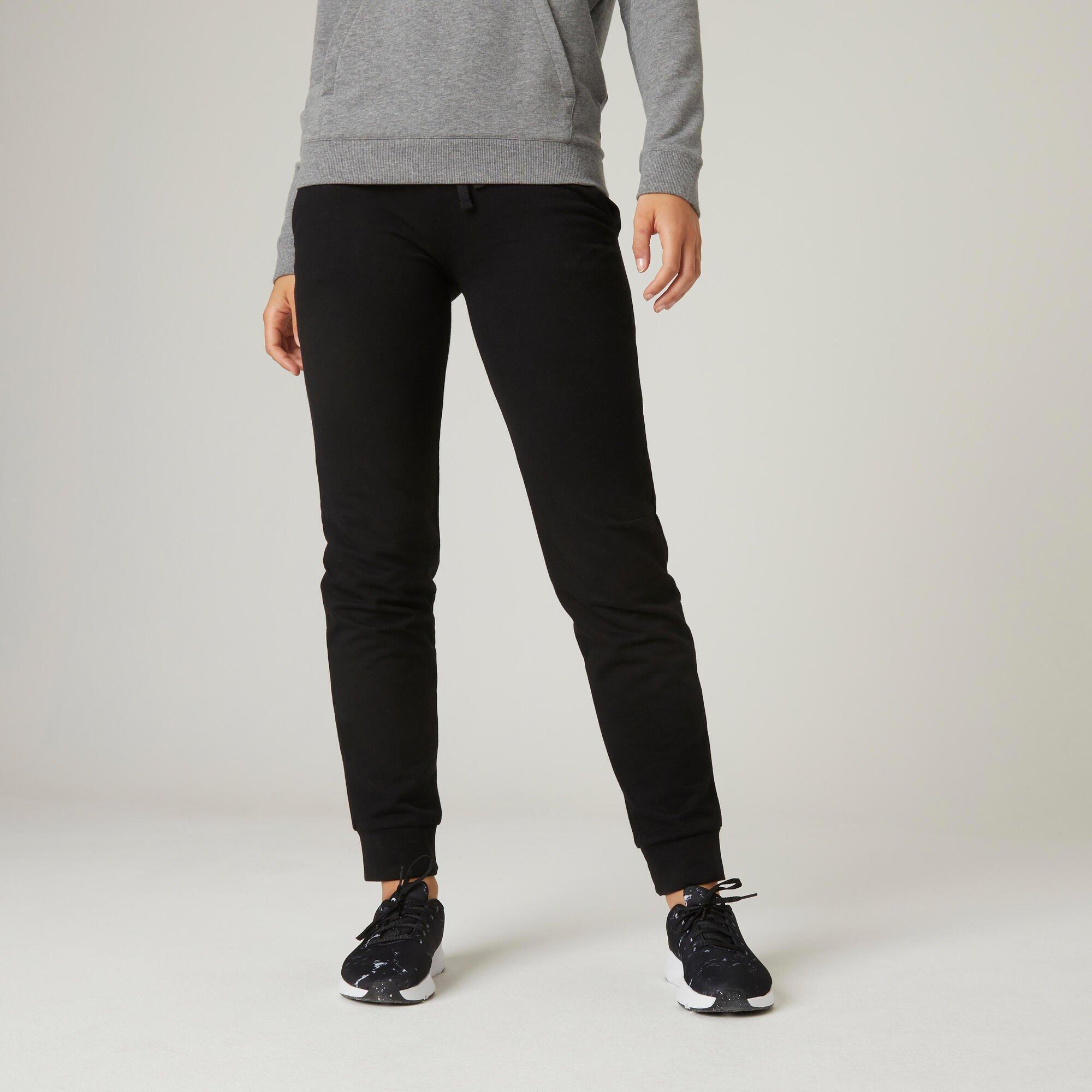 NYAMBA, Pantalon jogging Fitness Bas resserré coupe droite Noir