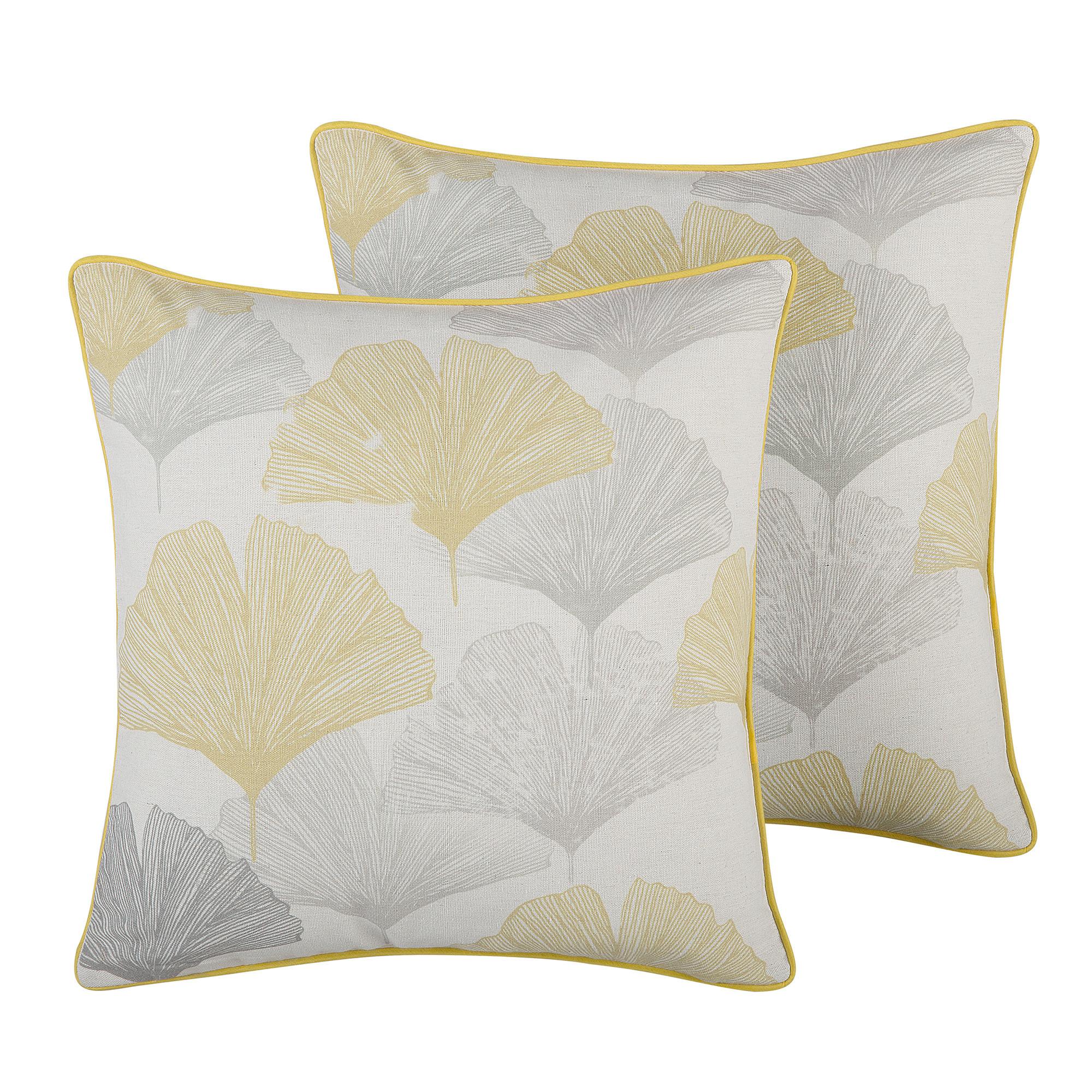 2 coussins décoratifs avec motif floral jaune et gris 45 x 45 cm. Ce lot de 2 coussins décoratifs au motif floral jaune et gris ajoutera une touche charmante à votre salon ou chambre. Les housses de ces coussins déco sont amovibles, donc si vous désirez changer d'ambiance, il vous suffira juste de retirer les housses et d'enfiler des nouvelles taies.