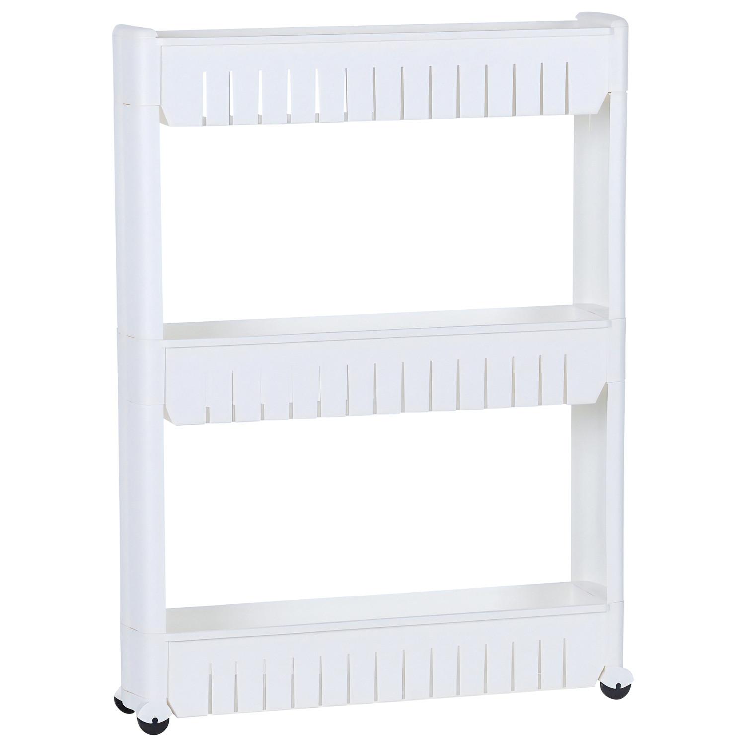 Le support de stockage blanc est facile à nettoyer et simple à utiliser. Le montage est simple et rapide et il est également facile à déplacer. Non seulement vous gagnez beaucoup de place dans un espace restreint, mais le chariot peut également être utilisé comme chariot de service, chariot à thé ou chariot de bar.