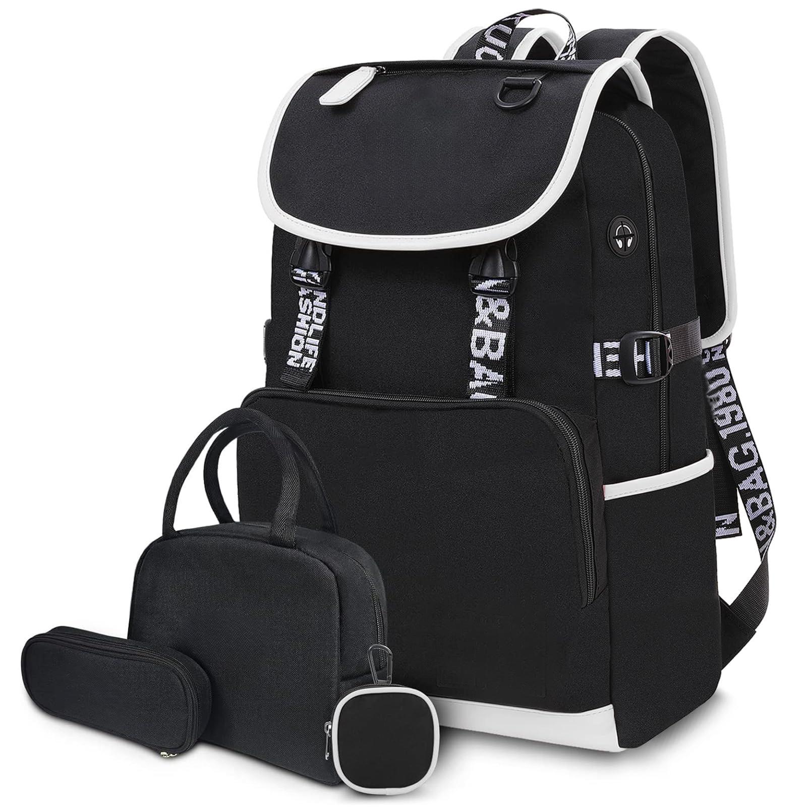 Ensemble de sacs à dos pour adolescents, comprenant un sac à dos + une boîte à lunch + une trousse à crayons + un portefeuille, tout ce dont vous avez habituellement besoin, 4 pièces en un seul ensemble. Taille du sac à dos pour adolescent : 46 x 30 x 16cm (H L L). Cet ensemble de sac à dos est parfait pour les adolescents âgés de 10 à 22 ans, les collégiens et les lycéens. L'ensemble de sac à dos pour enfants est fabriqué en oxford 600D, un matériau imperméable de haute qualité, pratique à essuyer et facile à sécher. Il protège l'intérieur du sac de l'humidité. Les coutures bien cousues et les fermetures à glissière lisses rendent le sac à dos durable et facile à glisser, sans décoloration, sans odeur, respectueux de l'environnement et de la santé. Le sac à dos comporte un grand compartiment principal pouvant accueillir un ordinateur portable de 15,6 pouces, des manuels scolaires A4, des iPads, des cahiers, des classeurs et d'autres fournitures scolaires, ainsi que des poches latérales pour une bouteille d'eau et un parapluie. Nous avons également conçu un porte-monnaie supplémentaire pour ranger vos pièces de monnaie, vos clés, vos cartes, vos écouteurs, etc. Ce porte-monnaie est plus facile à atteindre lorsqu'il est accroché à l'extérieur du sac à l'aide d'un mousqueton. Le sac à dos scolaire est également équipé d'un logo réfléchissant au dos et de deux bandes réfléchissantes sur les bretelles avant. * Le sac à dos pour adolescents est ergonomique et confortable, les bretelles sont réglables et amovibles. La longueur peut être ajustée en fonction de votre taille et de votre morphologie. Elles soulagent le cou et les épaules, et le coussin dorsal avec un matériau hautement perméable le garde au sec même lorsqu'il est porté pendant une longue période et ne sera pas couvert par la sueur.