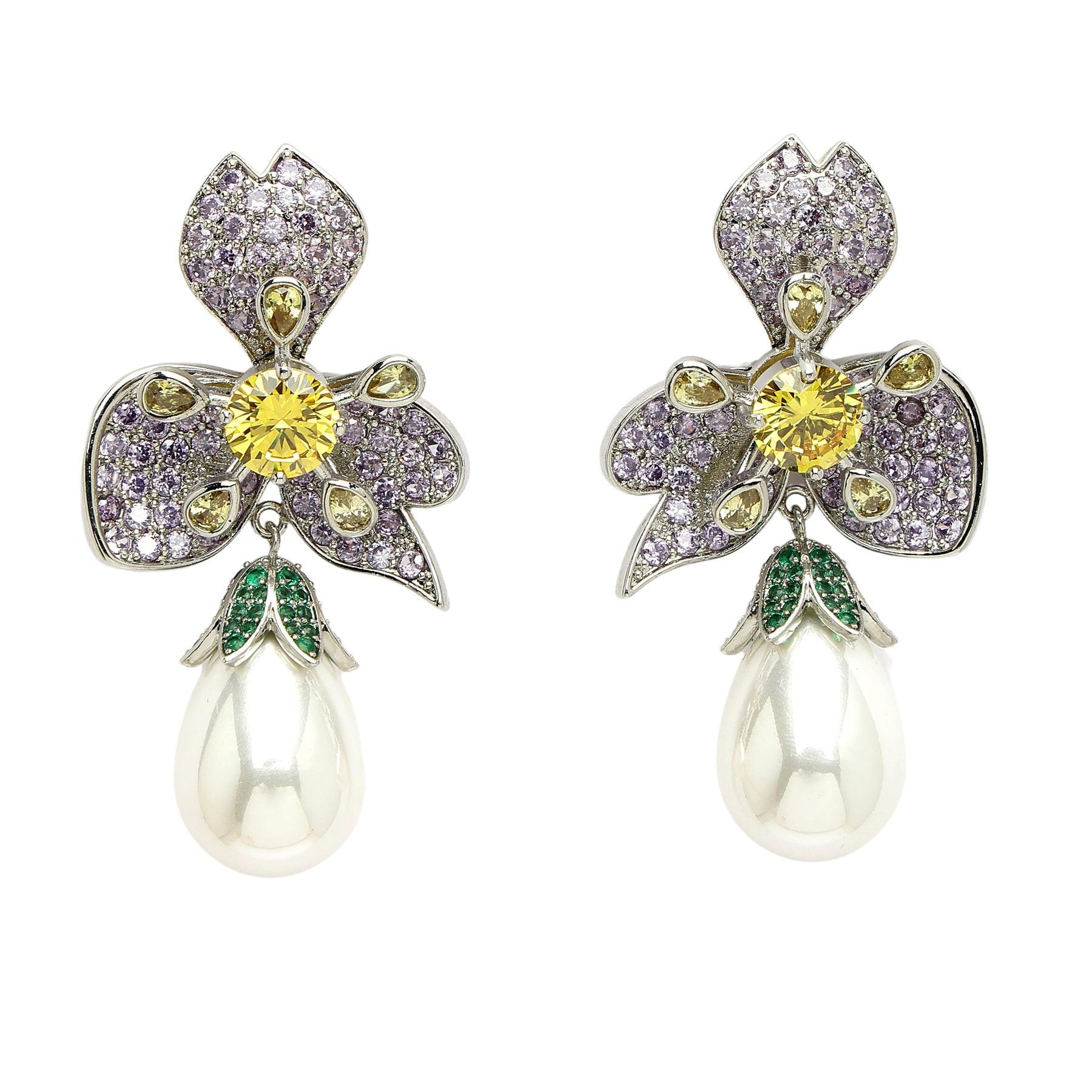 AVANT-GARDE PARIS, Collection Diva Boucles d'oreilles goutte florales en zirconia