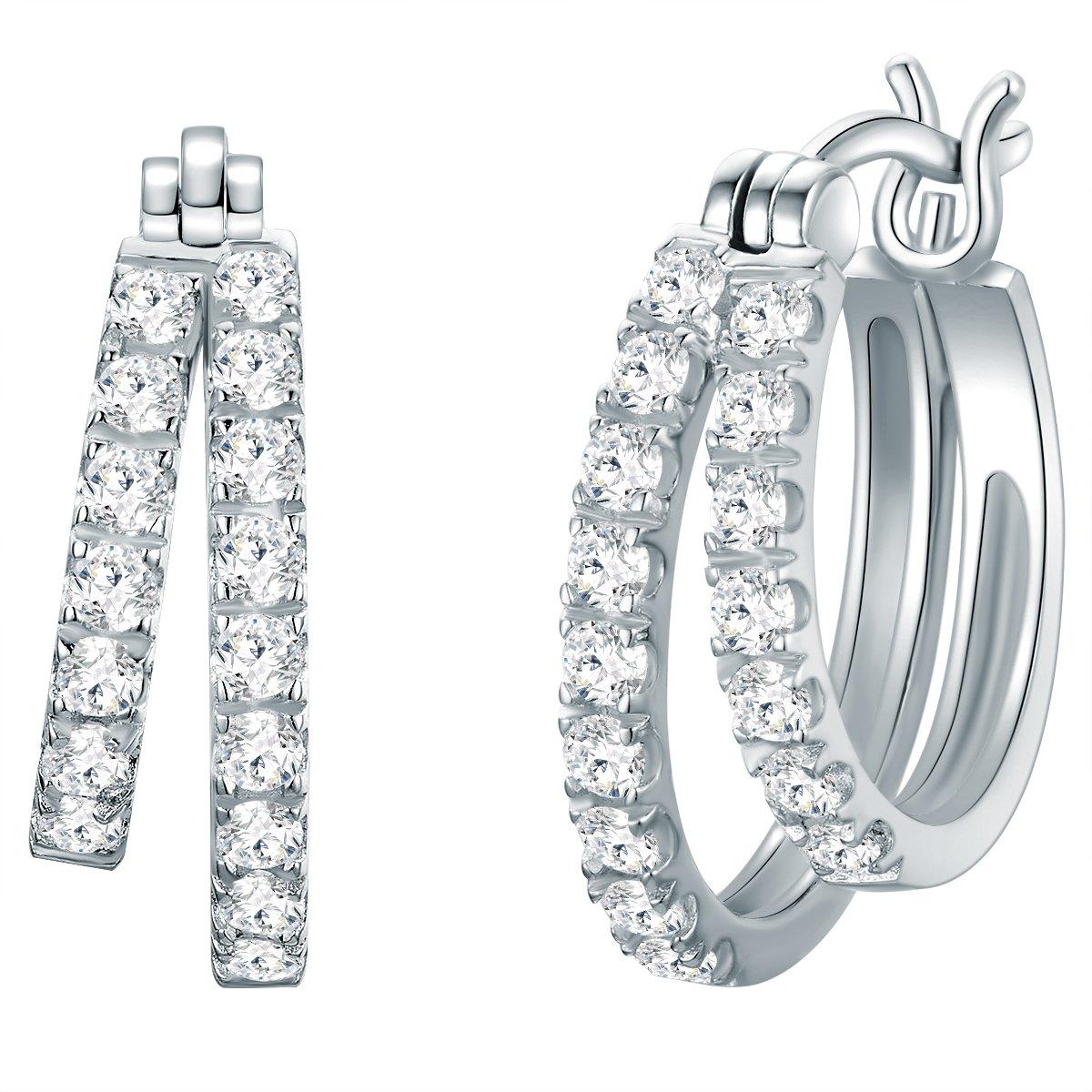 Les boucles d'oreilles scintillantes enrichissent chaque boîte à bijoux - comme ces créoles extraordinaires de l'étiquette de Trilani. La conception en forme de double circuit est garantie pour attirer les vues de chacun sur vos lobes d'oreille! Fabriqués en argent sterling 925 et avec du rhodium, les boucles d'oreilles gardent leur brillance en argent noble pendant longtemps. La garniture luxuriante avec des cristaux de zircone à facettes précisément dans la coupe de diamant assure une paillette séduisante. Les créoles s'harmonisent avec le look de bureau ainsi que les tenues décontractées dans le temps de loisirs - une pièce de tous les jours réelle. Le support de pliage pratique simplifie en mettant et en éteignant le meilleur confort.