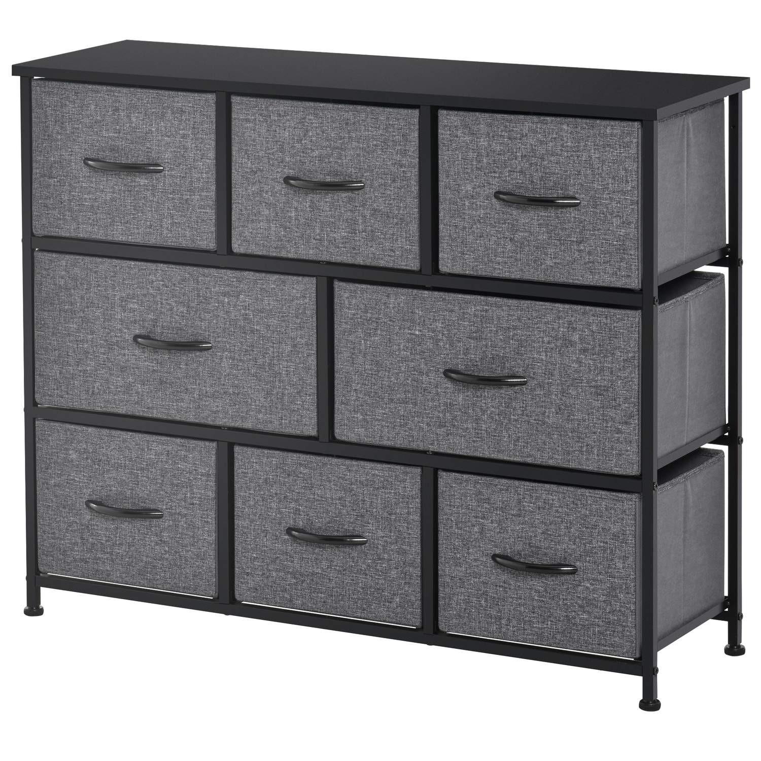 Commode à 8 tiroirs en tissu, meuble de rangement avec poignées, structure en métal, design moderne pour chambre ou salon, gris foncé