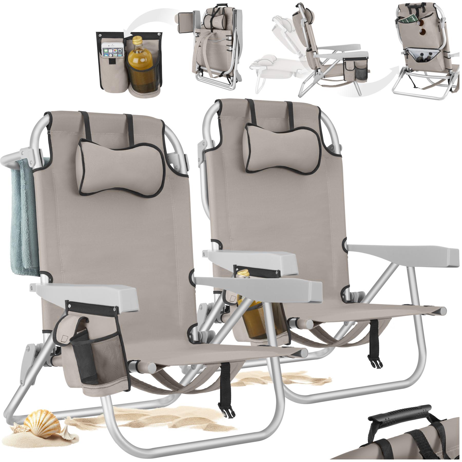 Tectake, Chaise De Plage Aluminium Pliable Confortable Avec Dossier Réglable Et Coussin Appui-tête, 2 Pièces
