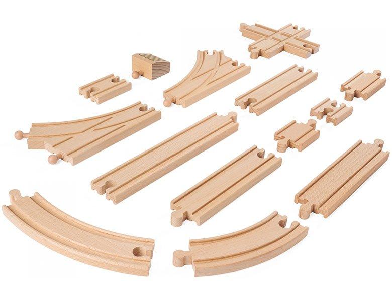 Dieses umfangreiche Schienensortiment besteht aus 44 hochwertigen Holzschienen und ist perfekt geeignet, um Ihre bestehende Schienenbahn zu erweitern. Es beinhaltet sowohl gerade als auch kurvenreiche Schienen, Kreuzungen, Weichen und Ausgleichsschienen. Die Schienen sind aus FSC 100% Holz gefertigt und somit eine umweltfreundliche Wahl. Sie sind kompatibel mit fast allen handelsüblichen Schienenbahnen. Ideal für kreative Bauprojekte.