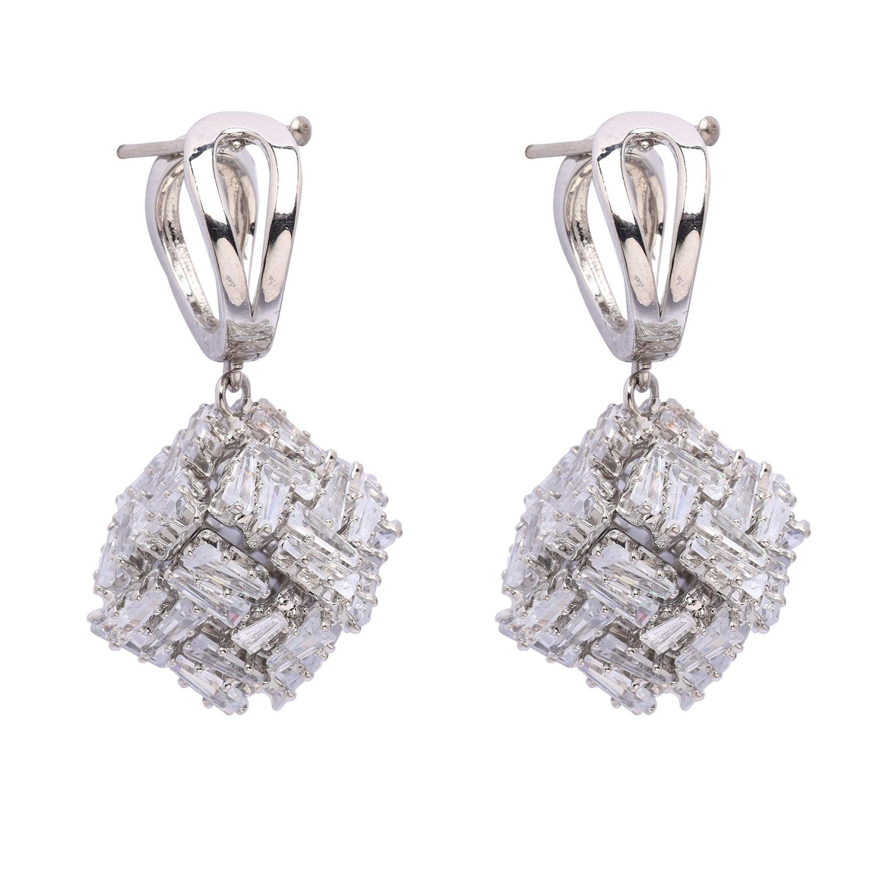 Imaginez une galaxie miniature suspendue à vos oreilles, chaque boucle d'oreille étant un assemblage étincelant de pierres disposées selon un motif géométrique envoûtant. Ces boucles d'oreilles sont un bijou d'exception qui respire l'élégance et le raffinement, parfait pour ajouter une touche de magie céleste à votre look glamour du quotidien. Dimensions : 1,5 cm x 3,5 cm | Placage : Rhodium | Fermoir : Tige et ardillon