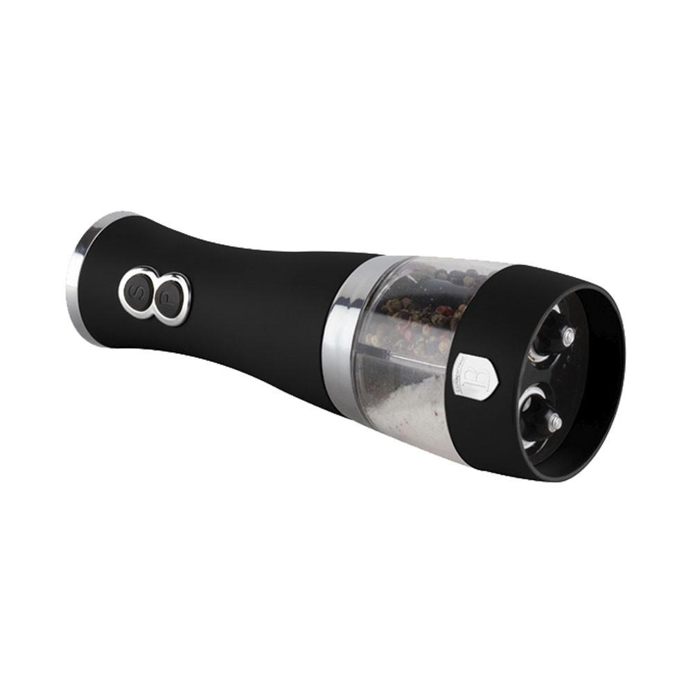 La salière et poivrière 2 en 1 Berlinger Haus de la collection Matte Black donne à votre cuisine à la fois style et fonctionnalité. Fabriqué en acier inoxydable de haute qualité avec un broyeur en céramique, il permet une utilisation pratique d'une seule main à l'aide de deux boutons. L'épandeur électrique, qui nécessite 6 piles AA (non incluses), est doté d'un récipient en acrylique à double paroi facilement rechargeable., , , Informations sur le produit, , Piles : 6 pièces AA (non incluses), Deux boutons de fonctionnement, Utilisation d'une seule main , Facilement rechargeable, Récipient en acrylique à double paroi, électrique, acier inoxydable de première qualité, élégant