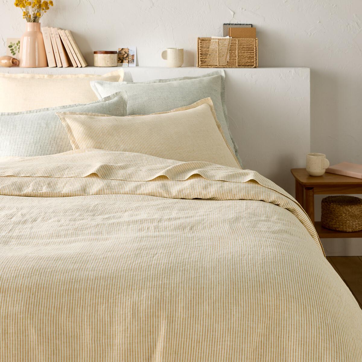 La housse de couette Limona fait référence à un répertoire traditionnel revisité dans des tonalités très actuelles. Des rayures en pur lin tissé teint.