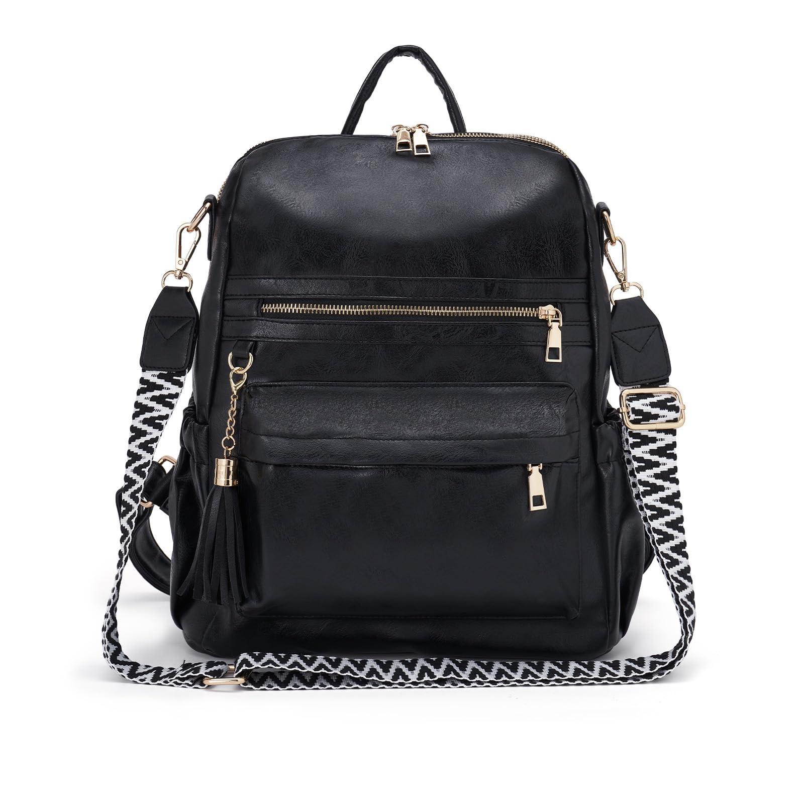 * Notre élégant sac à dos pour femme de taille moyenne est méticuleusement fabriqué en cuir PU de première qualité, connu pour sa durabilité, sa résistance à l'eau et sa texture souple. La doublure en tissu solide ajoute une couche supplémentaire de luxe. L'attention portée aux détails se traduit par des fermetures éclair qui glissent en douceur, des bretelles solides et confortables et des coutures impeccables. * Mesurant (L) 12,6" x (l) 5,9" x (H) 13,4", il est doté d'un intérieur bien organisé avec de multiples poches : 2 à l'avant, 2 de chaque côté, 3 à l'intérieur et une poche antivol à l'arrière. De plus, ce sac à dos à la mode peut accueillir confortablement un ordinateur portable de 14 pouces, parfait pour le travail, les voyages et l'usage quotidien. * Conçu pour répondre aux besoins des femmes, ce sac à dos 2 en 1 pour femmes avec bandoulière offre trois façons polyvalentes de le porter. Utilisez-le comme un sac à bandoulière chic ou transformez-le sans effort en sac à dos de voyage, selon votre confort et votre style. La sangle amovible à la mode ajoute une touche de couleur et peut être retirée sans effort.