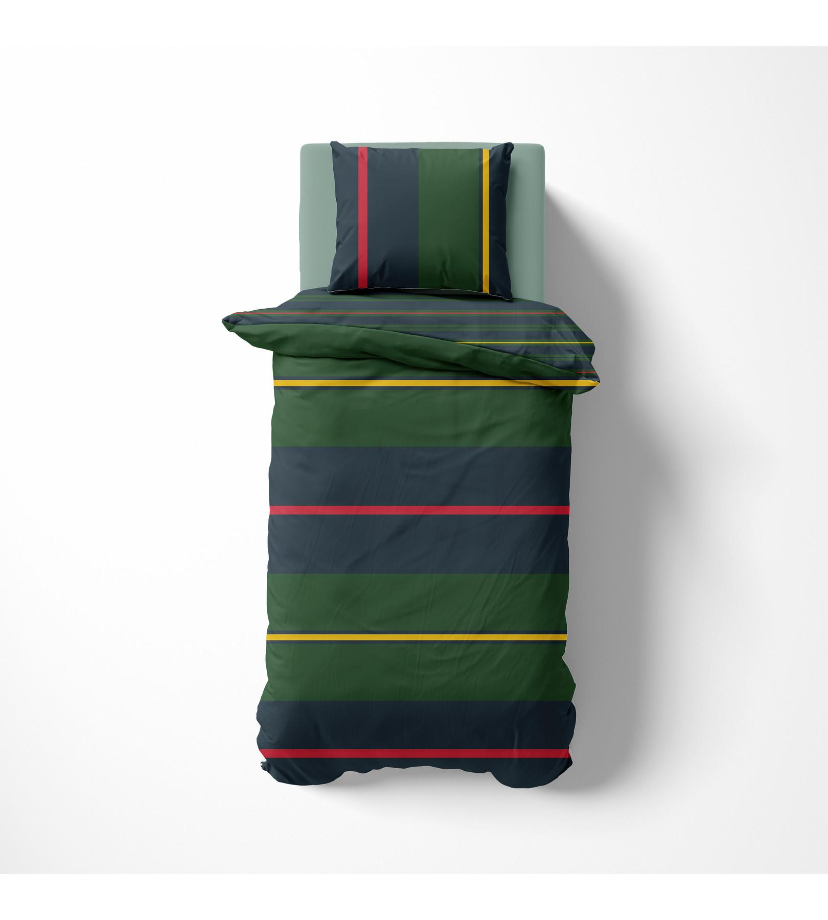 Le set de linge de lit Heritage apporte une touche élégante et confortable à toute chambre à coucher. Cet ensemble présente un motif à rayures vives, combinant des nuances de vert, de bleu, de rouge et de jaune pour créer un look dynamique et accueillant. Le design est à la fois moderne et intemporel, ce qui le rend adapté à divers styles de décoration.