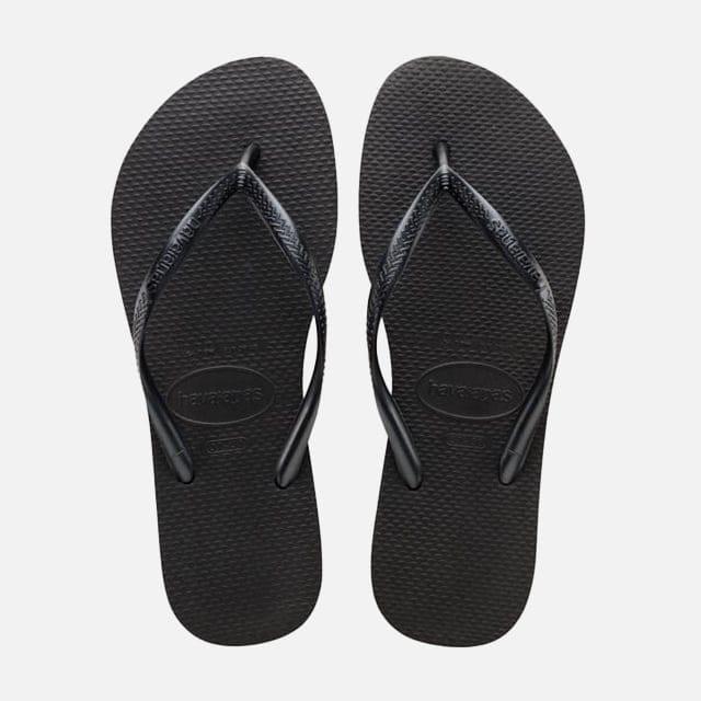 Les Havaianas Slim sont des sandales de plage estivales conçues pour la détente. Ces sandales tongs, disponibles en noir, sont légères et respirables. Leur semelle intérieure en caoutchouc garantit un confort optimal, tandis que la semelle synthétique assure une durabilité. Les détails de ces sandales incluent des nu-pieds en caoutchouc et synthétique, offrant une sensation de liberté. Les sandales Slim sont faciles à utiliser et conviennent parfaitement à une plage ou un été chaud.