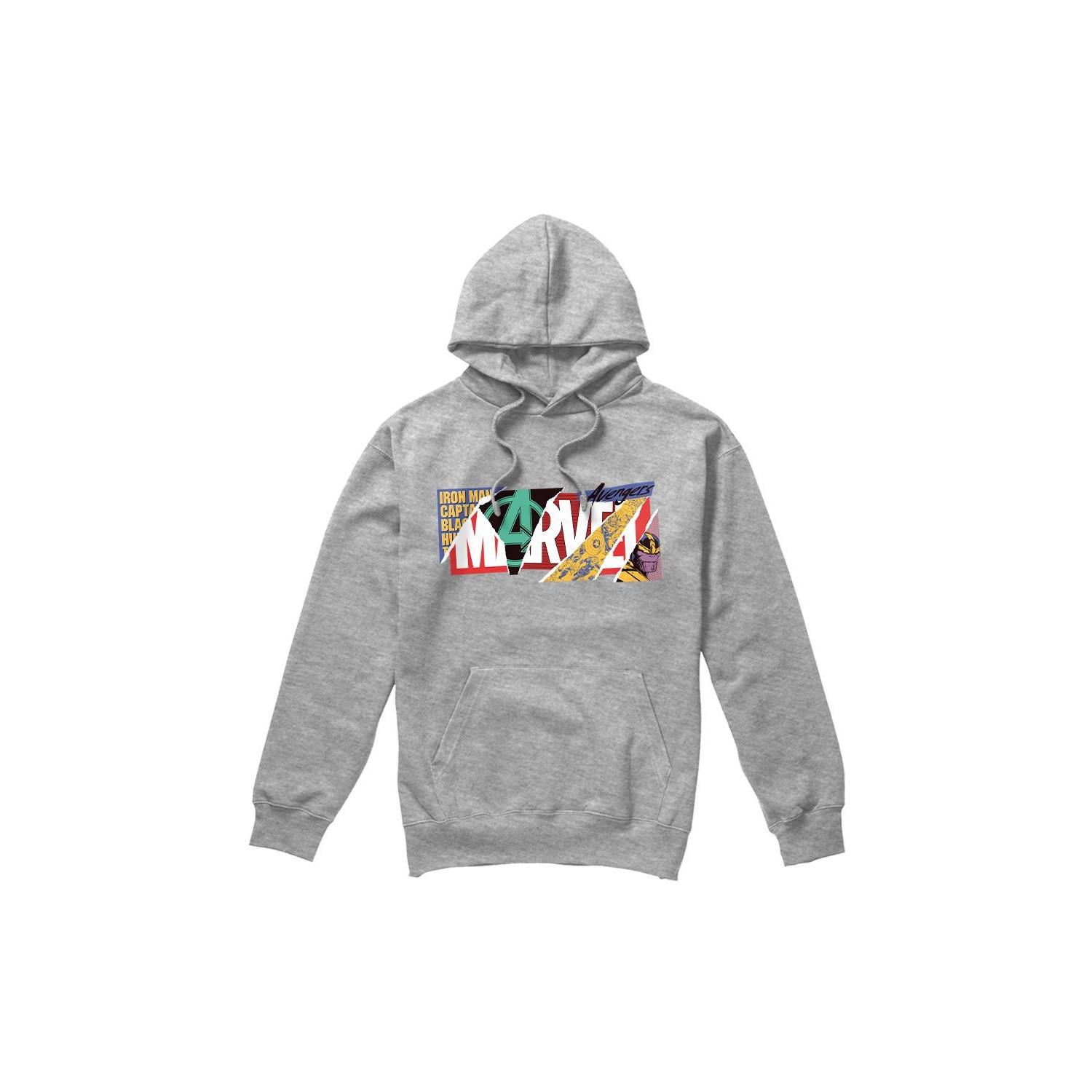 Ce sweat à capuche présente un graphique unique de style scrapbook sur le devant, mettant en vedette divers personnages et logos Marvel. Le design offre un look distinctif et accrocheur pour les fans.