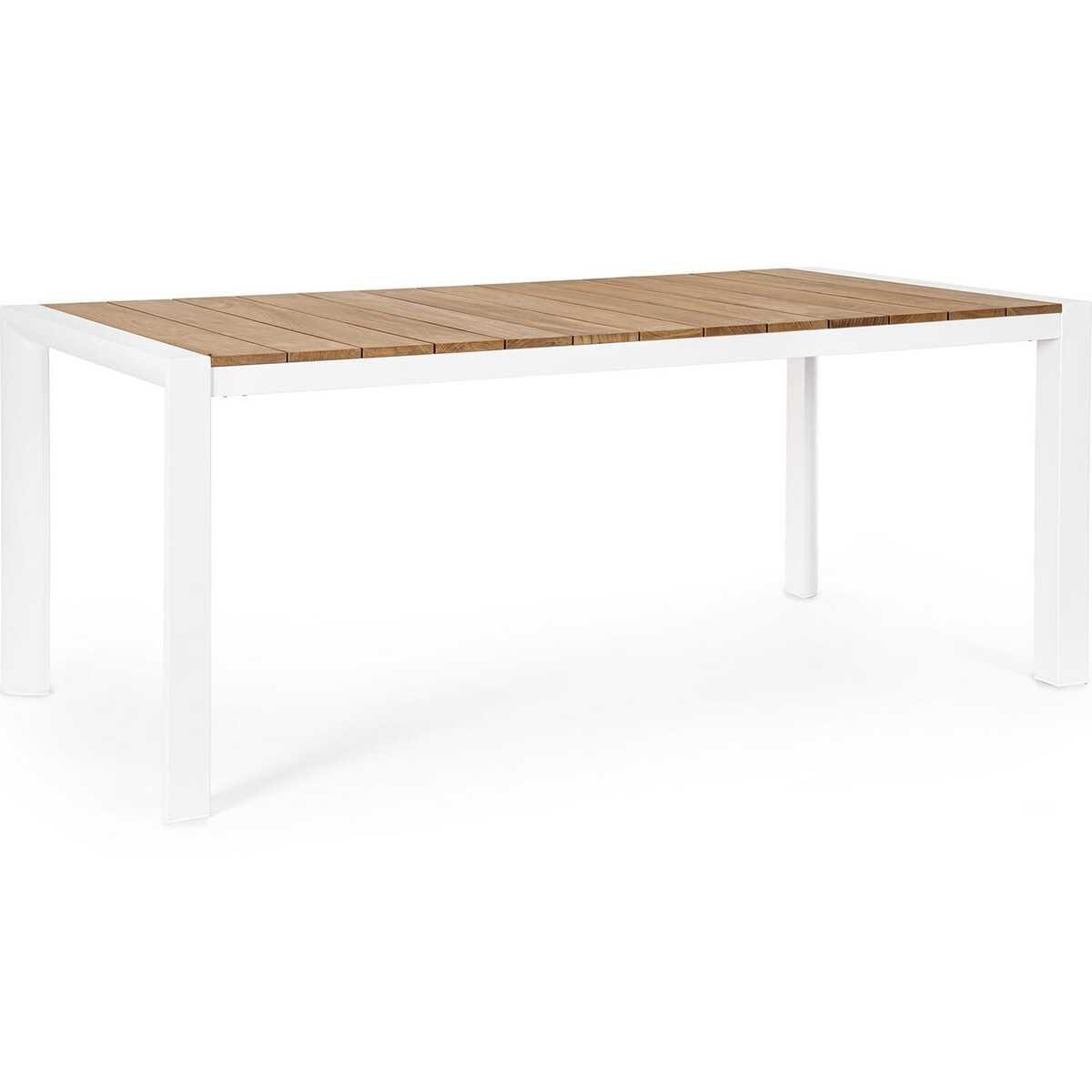Table en aluminium, teck et acier inoxydable, couleur blanche, 180 x 90 x 75hstructure en aluminium avec revêtement en poudre (polyester)plateau en teckvis en acier inoxydable