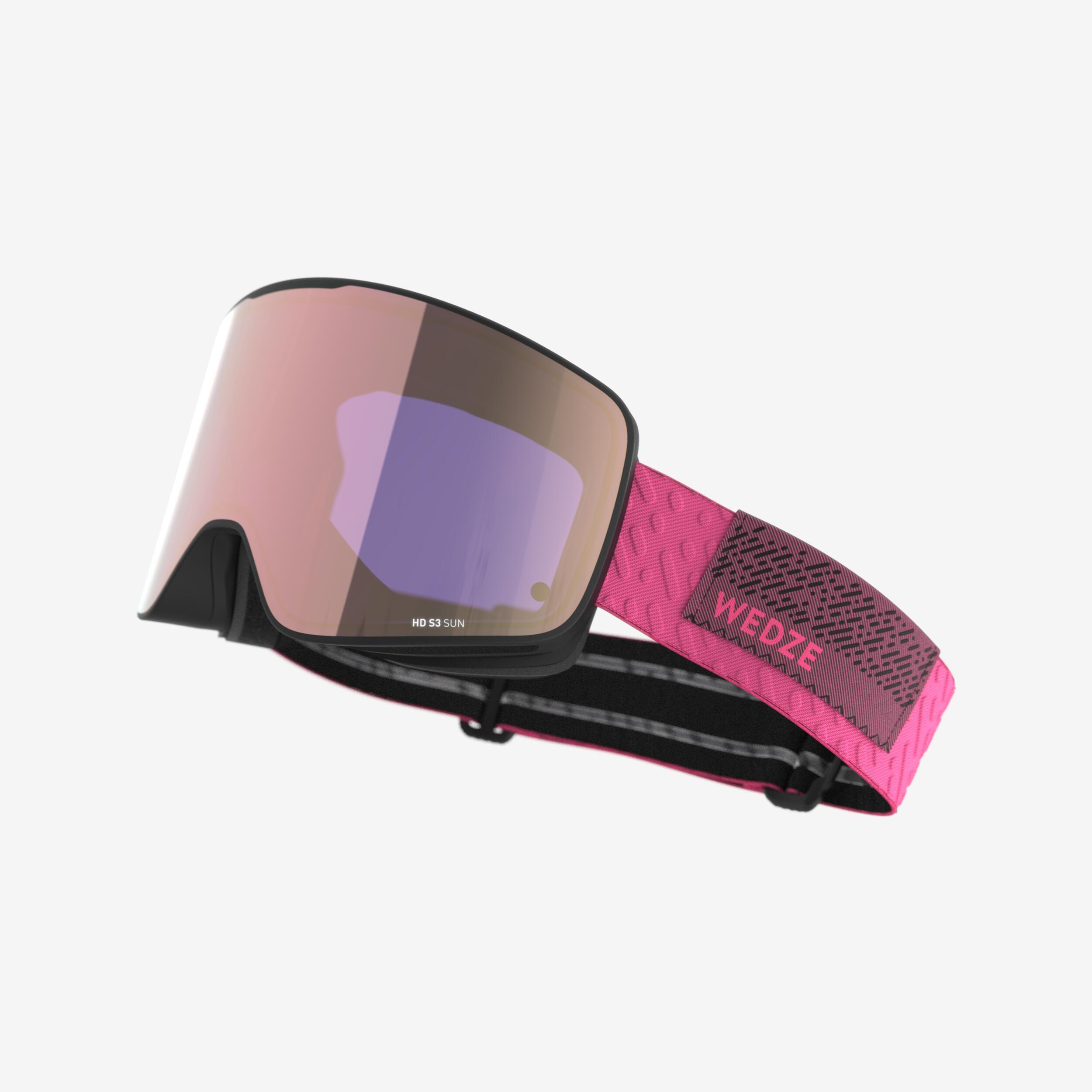 100 % anti-UV. Ecran Rose/violet idéal par beau temps ou sous les nuages.|Son écran HD offre une amélioration des contrastes.|Ecran cylindrique, large champ de vision.|Élastique 40 mm de large avec double bandes de silicone antidérapante|Accepte des lunettes de vue de 140mm maximum de large.|Anti-buée "OPTIMAL", double écran et monture ventilée|Double densité de mousse ergonomique et textile confortable.|2 Boucles pour un réglage rapide de la longueur de l'élastique