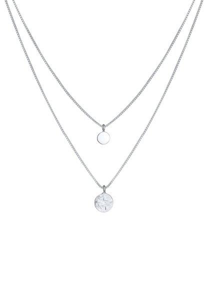 Fabriqué à la main en argent sterling 925 plaqué or, ce collier à deux rangs présente le look superposé parfait. Les deux fines chaînes vénitiennes sont ornées d'une pièce ronde polie et d'un pendentif en forme de plaque structurée. Les chaînes de différentes longueurs en 45 cm et 50 cm sont le style estival parfait pour votre décolleté. Pour la femme soucieuse de la mode, ce bijou est un incontournable. Longueur du collier supérieur : 45 cm Longueur du collier inférieur : 50 cm