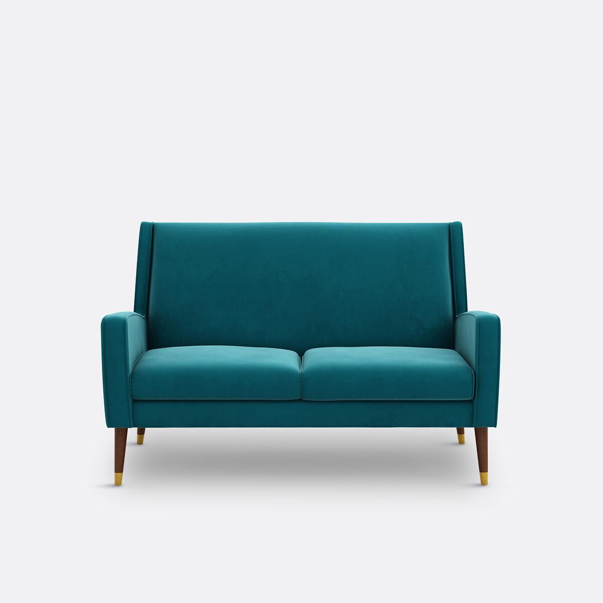 Le canapé (Y) 2 places : des lignes simples, des pointes de pieds finition laiton, un revêtement souligné par un piping chic et délicat...