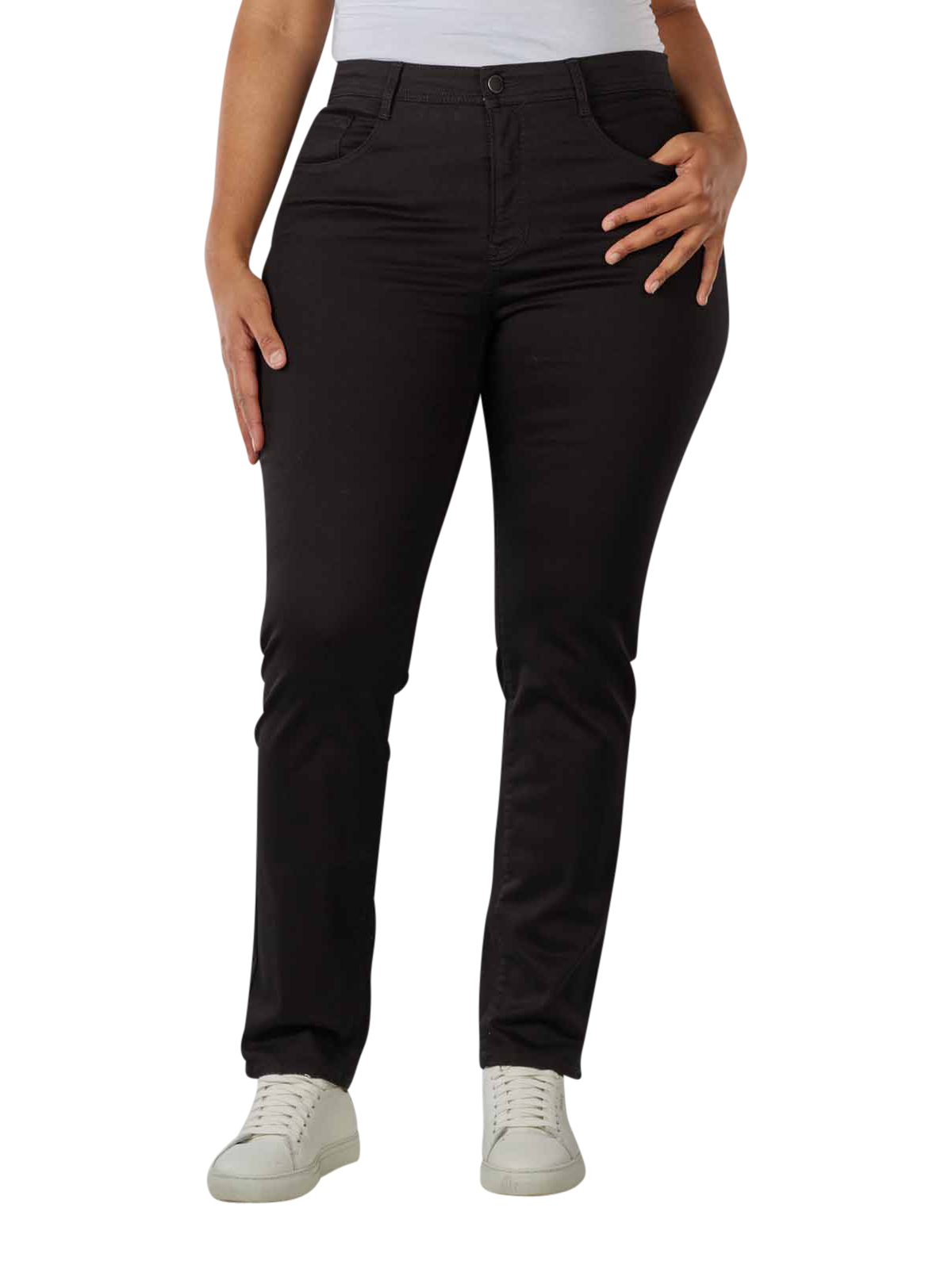 Ce jean Mary Plus Size Slim Fit est confectionné dans un tissu en coton élastique, combinant une coupe flatteuse avec une taille haute dotée d'une fermeture boutonnée et zippée. Grâce à son matériau élastique, ce jean pour femme est très confortable malgré sa coupe ajustée.