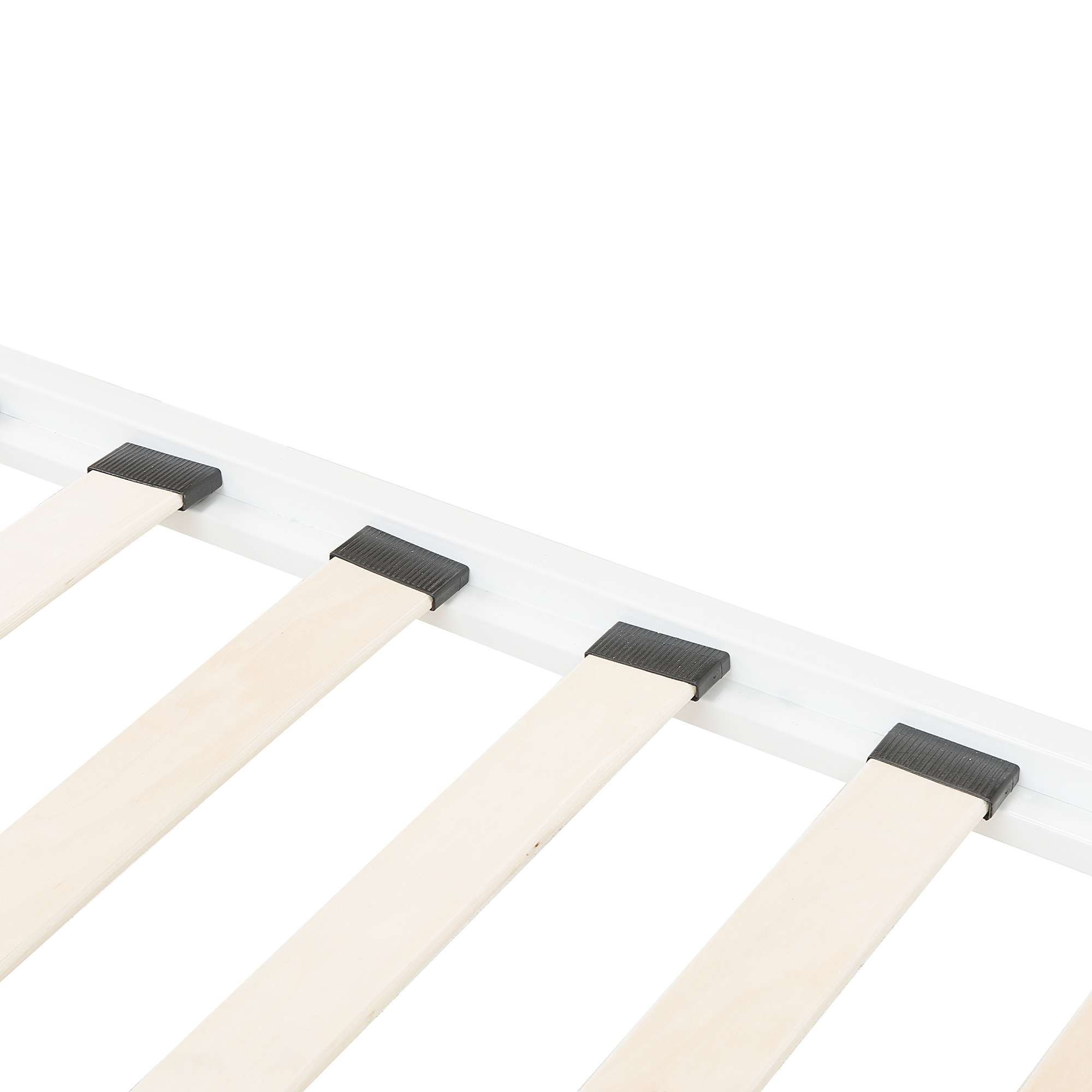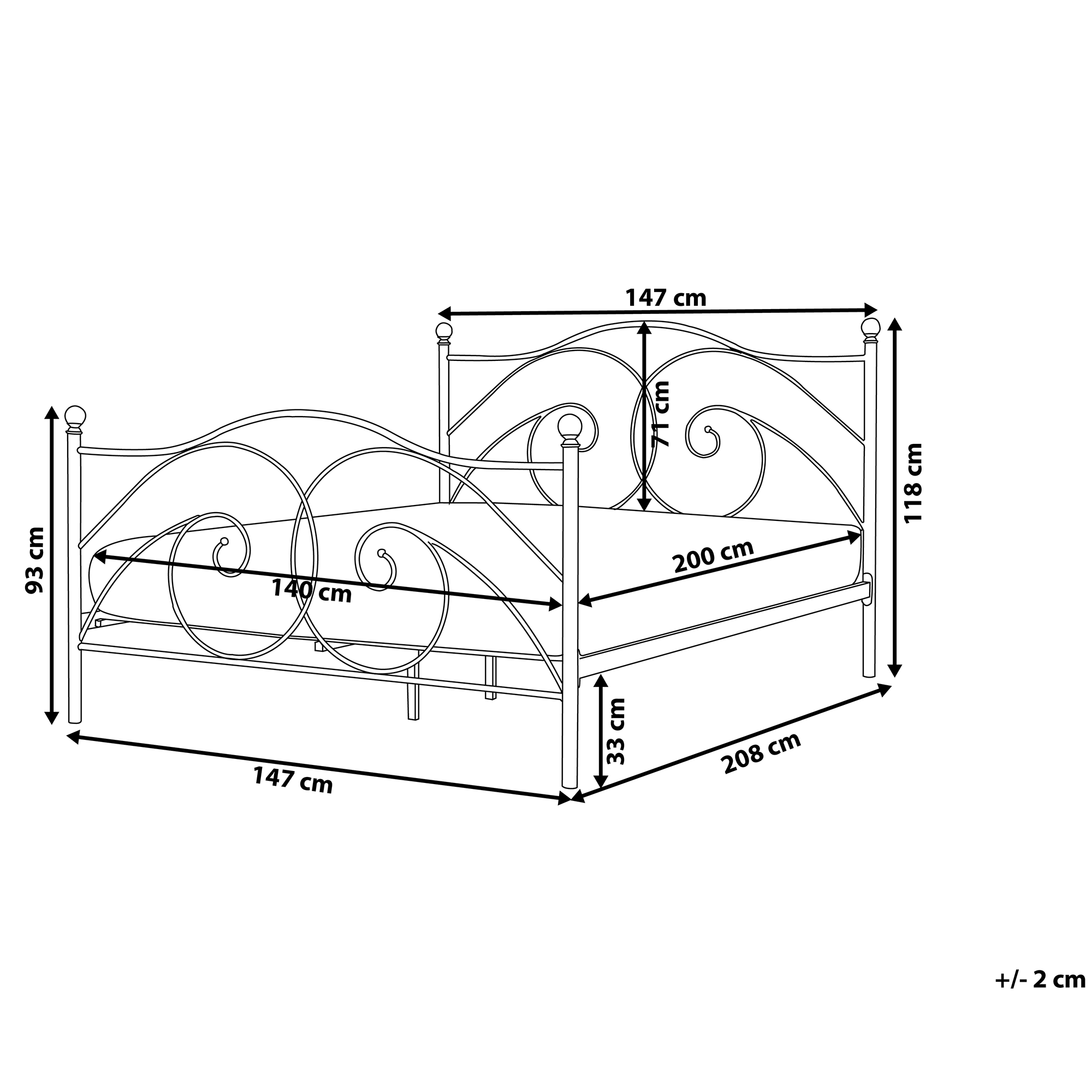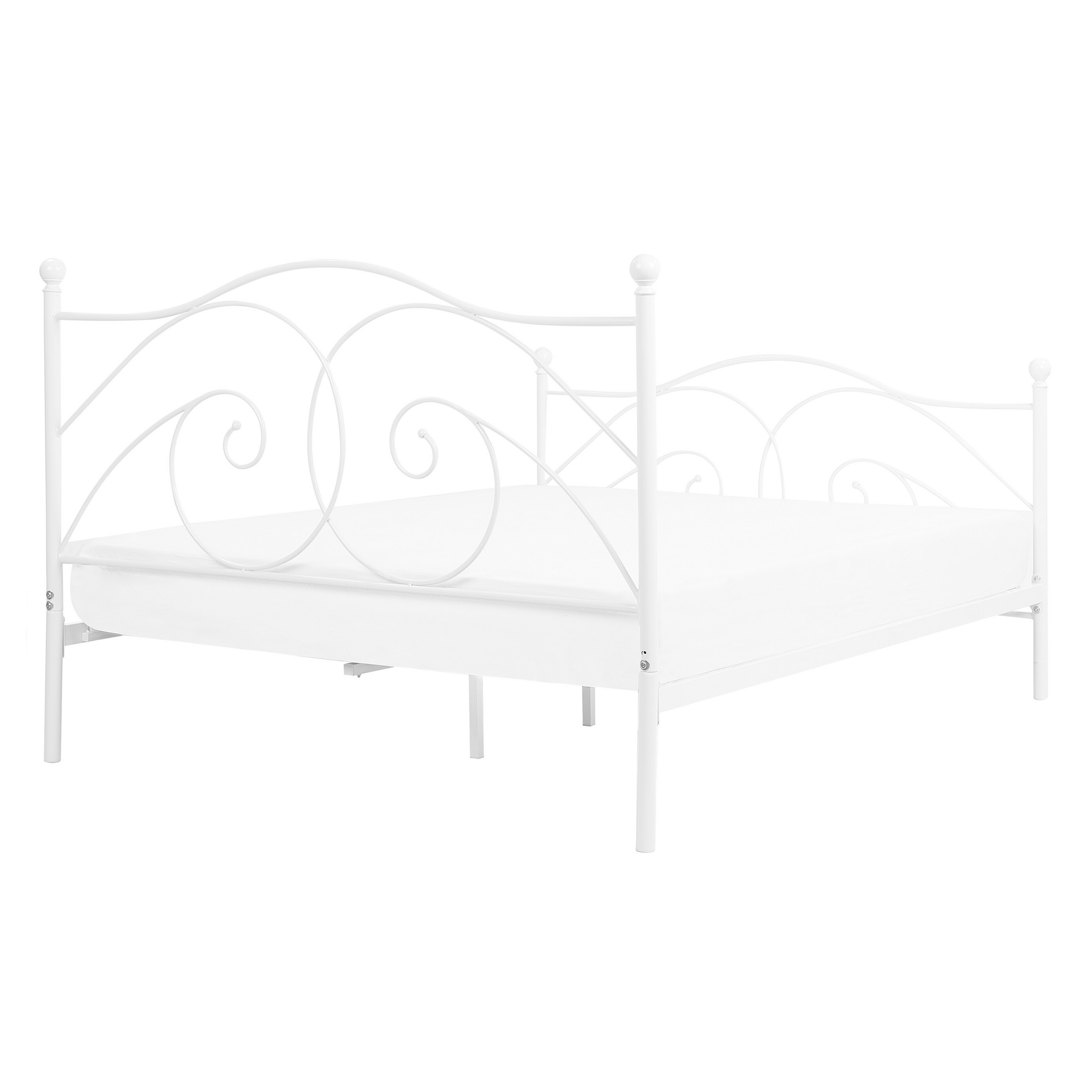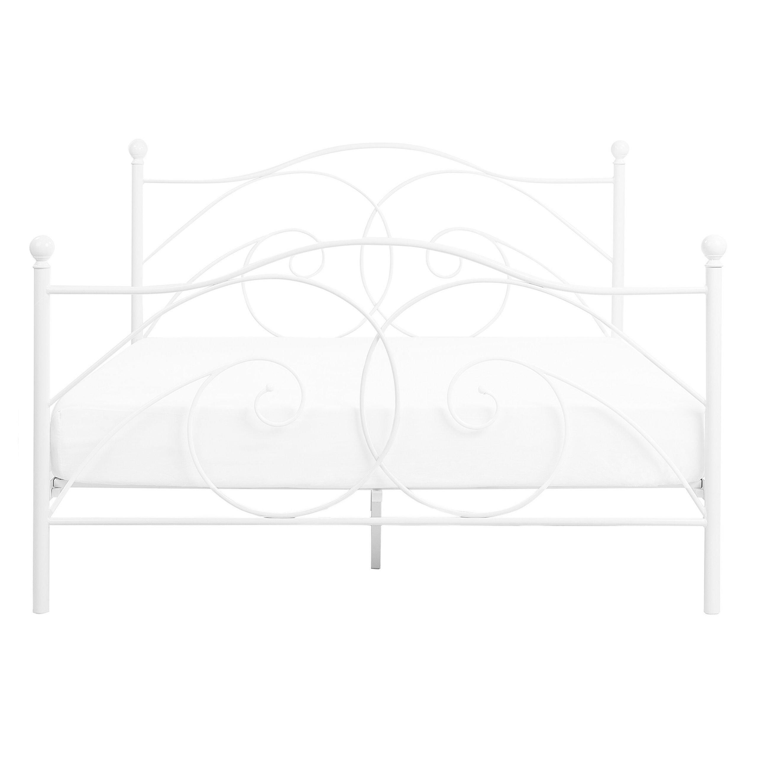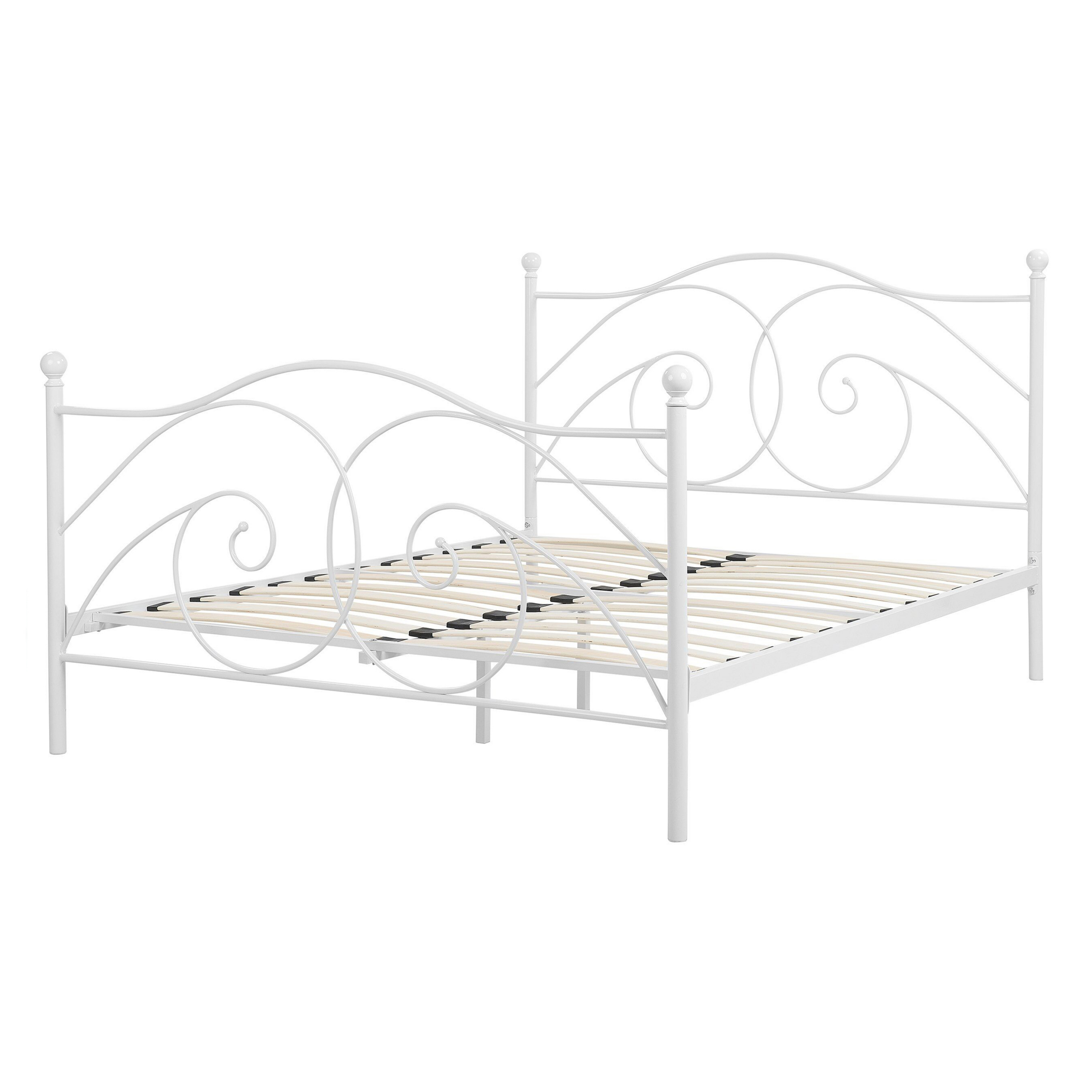 Lit deux places romantique. Ce lit double au style intemporel est une véritable invitation au sommeil. Le cadre de lit blanc avec de jolis ornements arrondis donnera un aspect élégant et romantique à votre chambre. La construction solide en métal et un sommier à lattes inclus offrent le soutien nécessaire et le confort de couchage optimal.