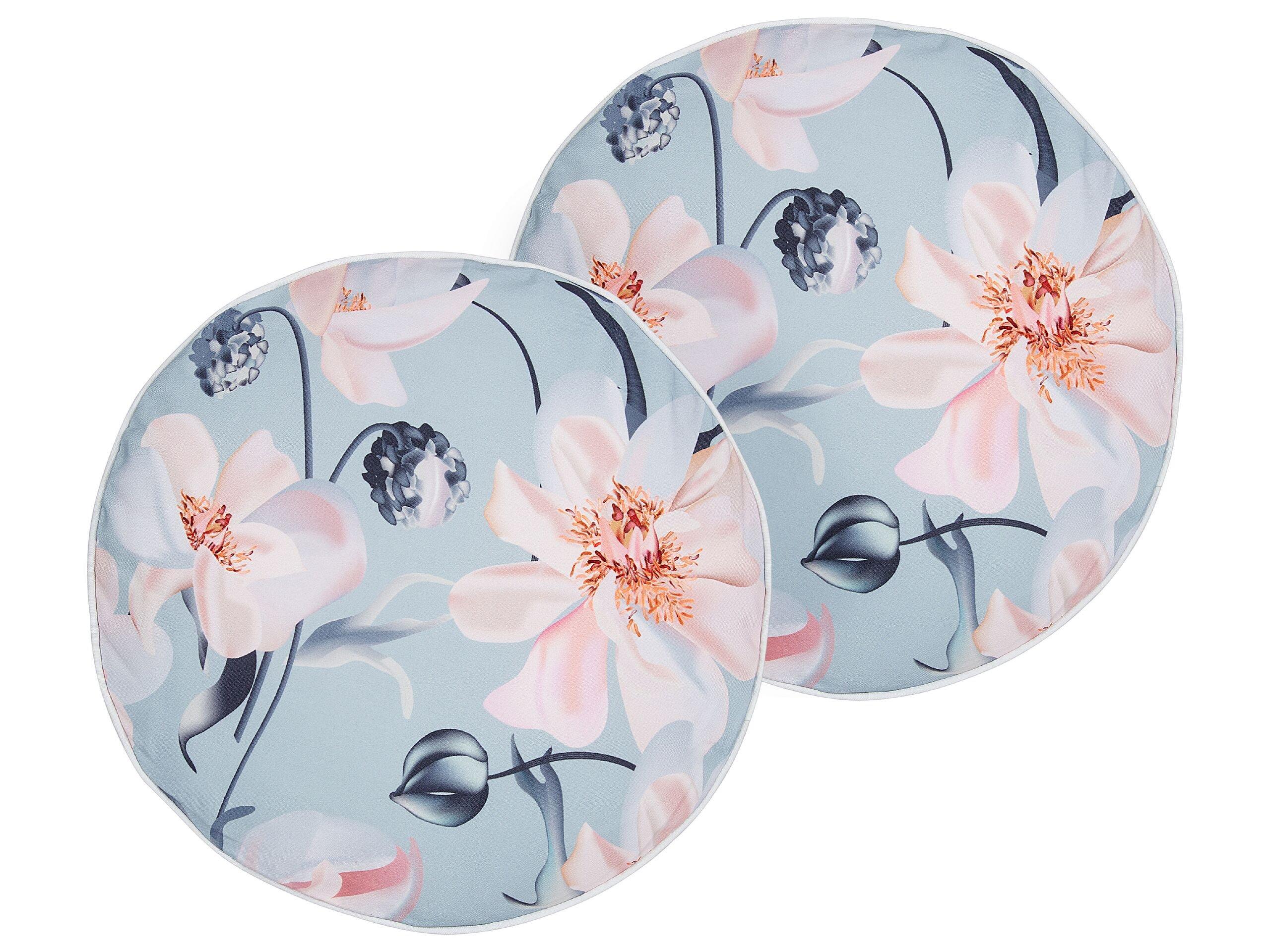 Set de 2 coussins d'extérieur. Faites ressortir votre décoration extérieure avec ces coussins épais et élégants. Les deux pièces présentent un motif qui attire l'attention, mettant en valeur de grandes fleurs, qui, combinées à la teinte bleu clair des coussins, charmeront certainement tous ceux qui se trouveront dans votre espace extérieur. Fabriqués en polyester, les textiles sont résistants à l'eau, ce qui en fait un excellent choix pour le jardin ou le balcon. De plus, les housses sont dotées de fermetures éclair, ce qui vous permet de les retirer rapidement et de les laver si nécessaire.