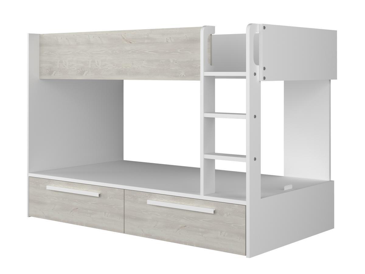 Vente-unique, Lits superposés 2 x 90 x 200 cm - 2 tiroirs - Blanc et naturel - TINOLI