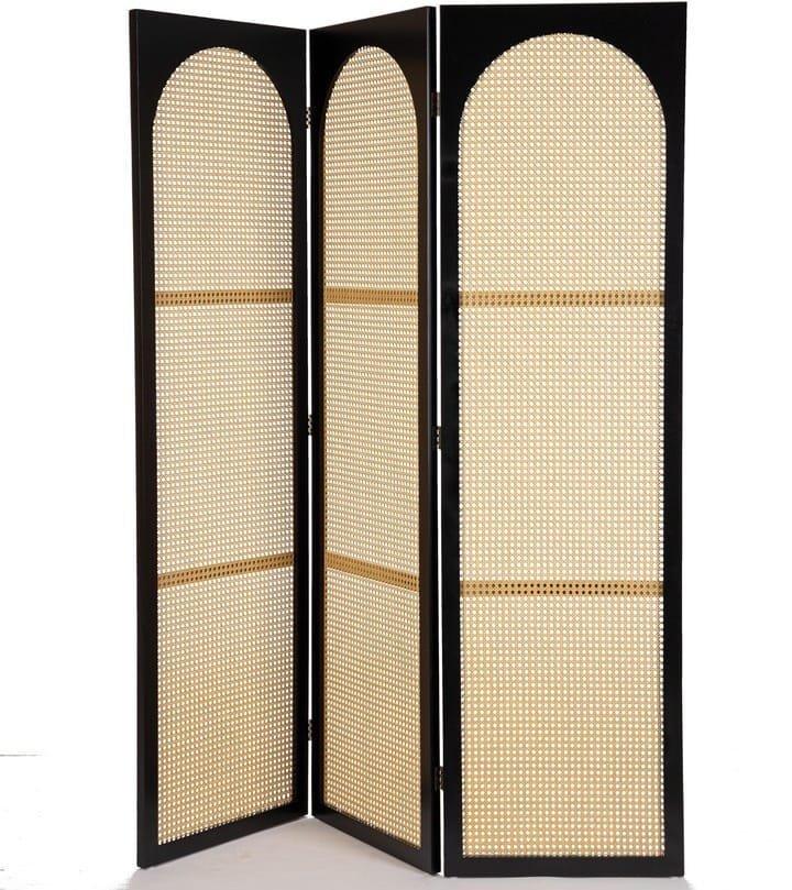 Paravent en bois, cadre en pin avec remplacement du rotin, couleur noire, 150x2x180h