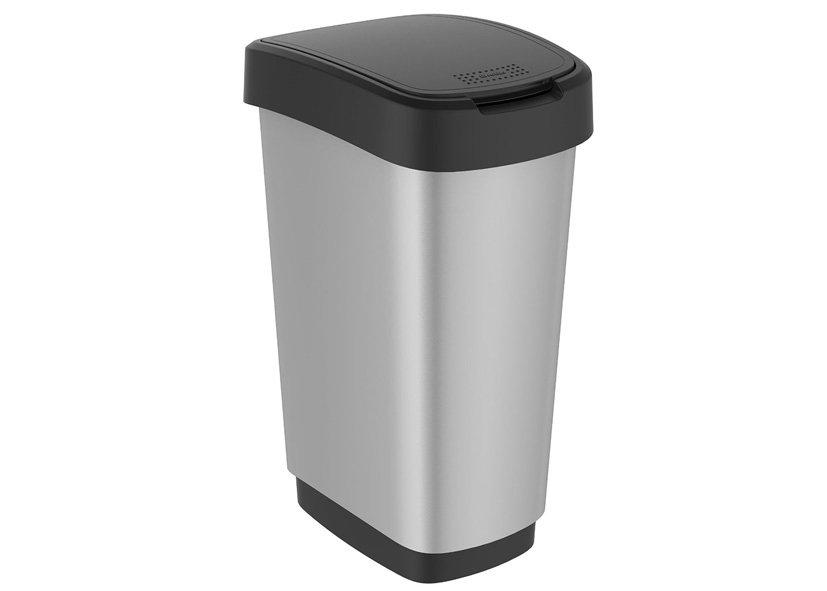 Seau pivotant "Twist" Couleur : argent/noir Fabriqué en polypropylène Dimensions : 40,1 x 29,8 cm - h 60,3 cm Contenu : 50 litres fait en Suisse